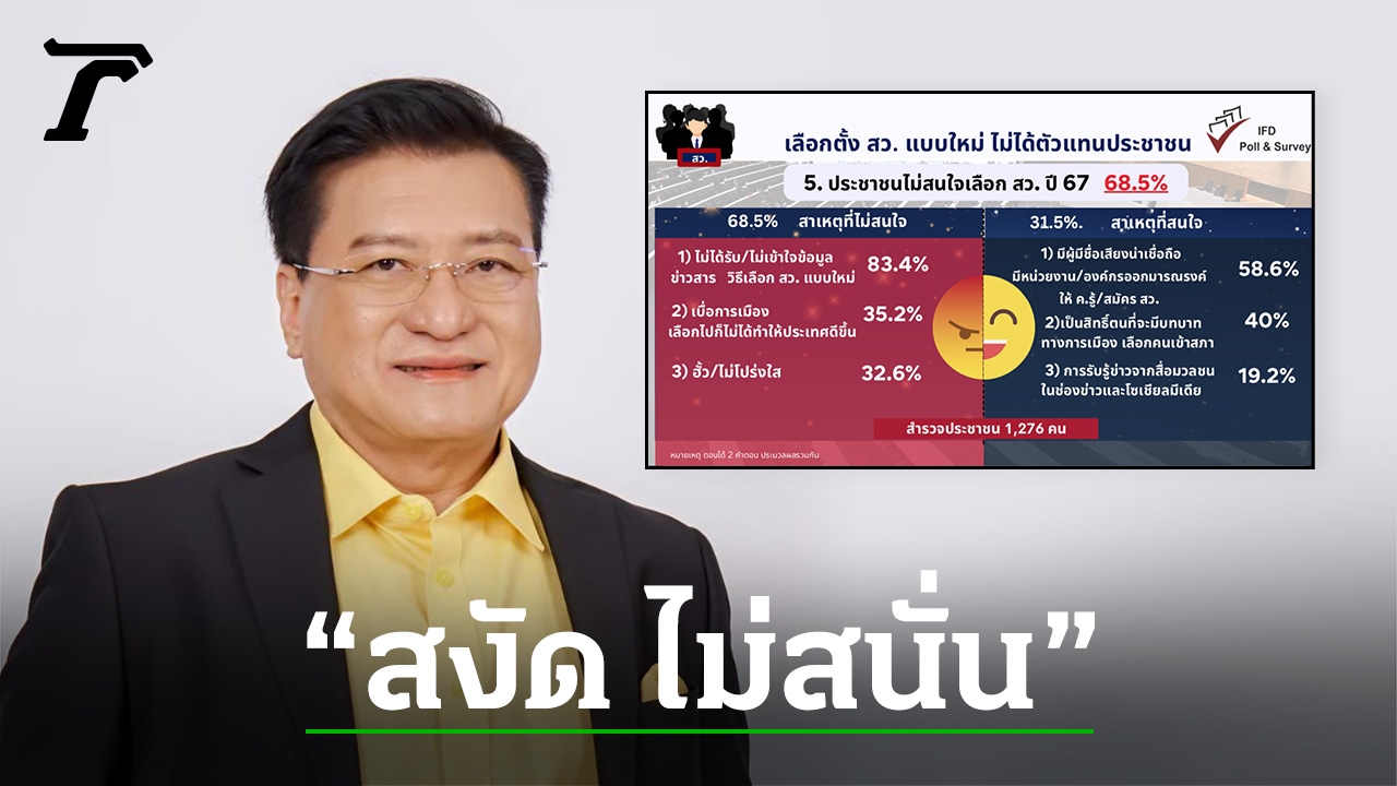 “ไอเอฟดี” โพล เผยผลสำรวจ “เลือกตั้ง สว.แบบใหม่ไม่ได้ตัวแทนประชาชน” แต่ได้คนสัมพันธ์กับพรรคการเมือง นายทุน ประชาชนหมดหวัง เพราะเปลี่ยนประเทศไปทางแย่ลง