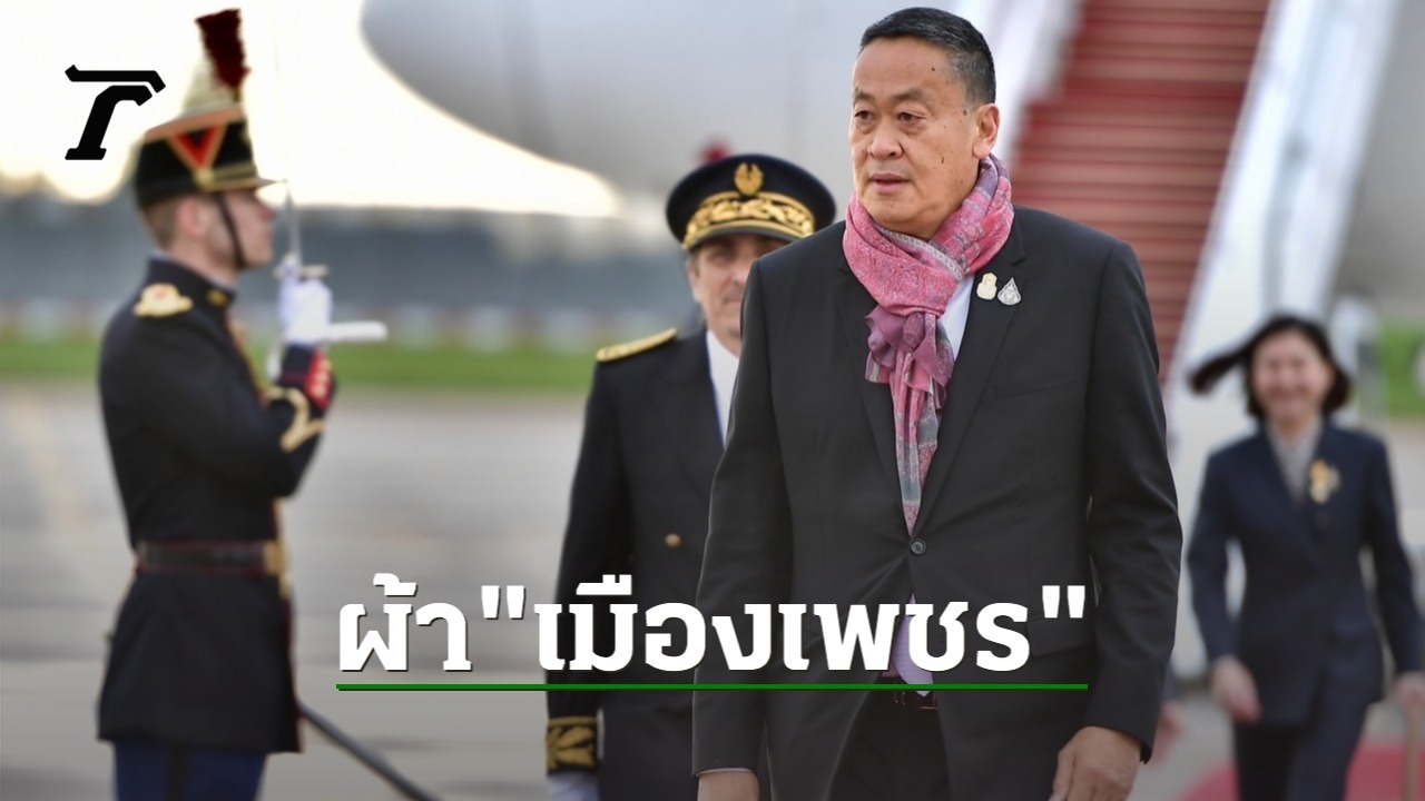 นายกฯ "เศรษฐา" ถึงเมืองน้ำหอม เตรียมนำนักธุรกิจไทยร่วมเวที คุยประธานาธิบดีฝรั่งเศส เสร็จ บิน "มิลาน" โดยมีการสวมผ้าพันคอจากเมือง "เพชรบุรี" ลาย "เพ็ชรราชวัตร" อวดต่อสายตาโลกด้วย