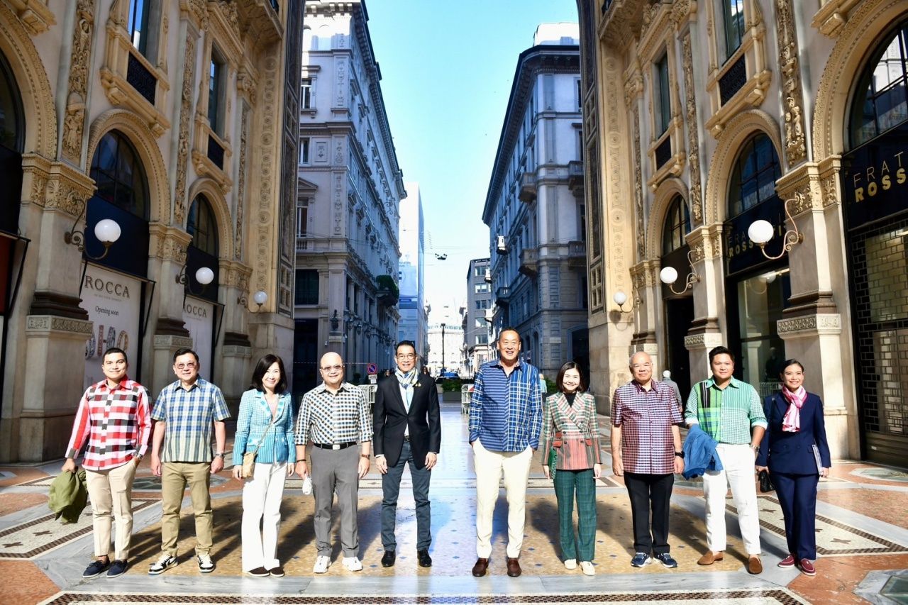 นายกฯ พาคณะทำงาน ใส่ชุดผ้าขาวม้าโชว์ชาวอิตาลีและนักท่องเที่ยว กลางเมืองมิลาน ต่อยอดผลิตภัณฑ์ไทย ก่อนเดินทางไปปฏิบัติภารกิจเยี่ยมชมกระบวนการผลิตชีส