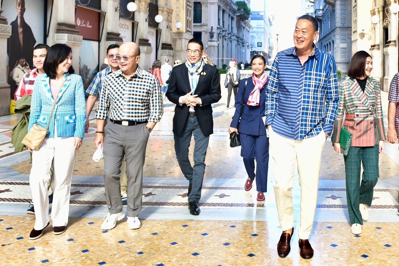 วันที่ 18 พ.ค. 2567 ที่สาธารณรัฐอิตาลี ก่อนปฏิบัติภารกิจ นายเศรษฐา ทวีสิน นายกรัฐมนตรี และคณะใส่ชุดผ้าขาวม้า เดินโชว์กลางเมืองมิลาน ซึ่งเป็นเมืองแห่งแฟชั่น เพื่อให้เจ้าของแบรนด์และชาวอิตาลี รวมทั้งนักท่องเที่ยว ได้เห็นถึงความสวยงามของผ้าขาวม้า และผ้าไทย ที่สามารถตัดเย็บออกเป็นเสื้อผ้าได้สวยงาม ไม่แพ้แบรนด์ชั้นนำของโลก ซึ่งสามารถใส่ได้ทุกโอกาส และต่อยอดได้อีกหลากหลายผลิตภัณฑ์ เช่น กระเป๋า เข็มขัดเนกไท โบผูกผม เป็นต้น จากนั้นออกเดินทางจากโรงแรมที่พักไปยังโรงงานผลิตชีส ของบริษัท BONI S.p.A เมืองปาร์มา เพื่อหาโอกาสความร่วมมือระหว่างไทยอิตาลี โดยอิตาลีเป็นหนึ่งในผู้ผลิตและแปรรูปอาหารรายใหญ่ที่สุดในสหภาพยุโรป