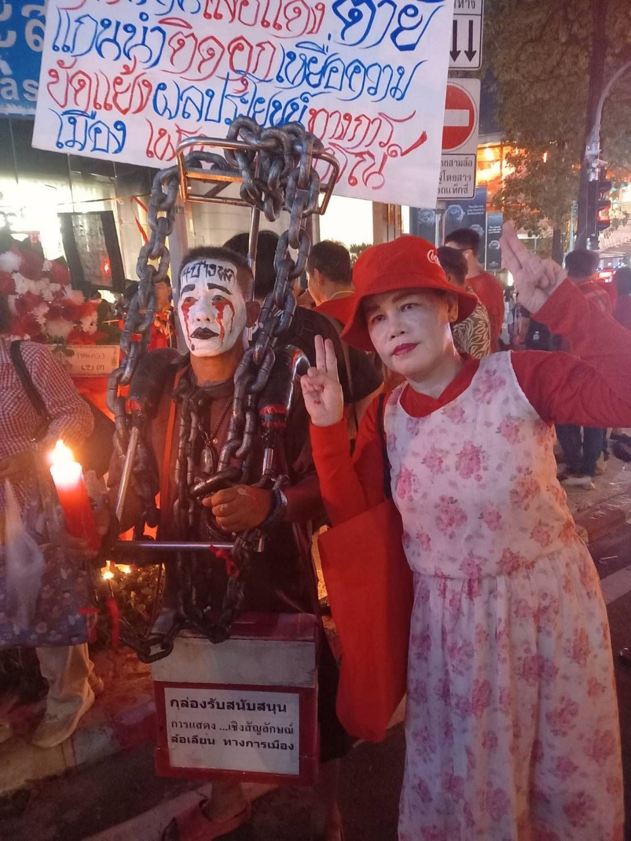 ส่วนบริเวณสะพานลอยที่ 2 ถนนราชดำริ ซึ่งห่างไปราว 200 เมตร เป็นกลุ่มคนเสื้อแดงสนับสนุนเพื่อไทย ประกอบไปด้วยกลุ่มแดง กทม. 50 เขต กลุ่ม new คนรักทักษิณ นำโดย นายสมชาย งามประเสริฐสุข เดินทางมารวมตัวจัดกิจกรรม มีอดีตแกนนำ นปช.ในยุคปี 2553 ซึ่งปัจจุบันยังคงอยู่กับฝากฝั่งพรรคเพื่อไทย เดินทางเข้าร่วม อาทิ นายวรชัย เหมะ อดีต สส.สมุทรปราการ นายพายัพ ปั้นเกตุ อดีต สส.สิงห์บุรี ปรึกษารองนายกรัฐมนตรีและรัฐมนตรีว่าการกระทรวงพาณิชย์ นายเกริกมนตรี รุจโสตถิรพัฒน์ สส.บัญชีรายชื่อ พรรคเพื่อชาติ นางสุดสงวน สุธีสร หรือ อ.ตุ้ม อดีตนักวิชาการธรรมศาสตร์ นายพลต เฉลิมแสน รวมถึง ทันตแพทย์หญิงศรีญาดา ปาลิมาพันธ์ นายอนุสรณ์ เอี่ยมสะอาด น.ส.ตรีชฎา ศรีธาดา เดินทางมาร่วมปราศรัยด้วย