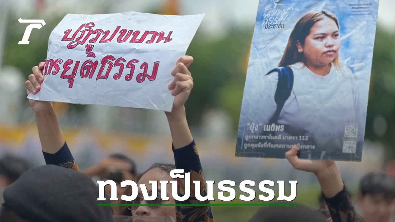 "กลุ่มทะลุวัง" บุกทำเนียบฯ ทวงถามความเป็นธรรม "บุ้ง ทะลุวัง" ให้ปฏิรูปกระบวนการยุติธรรม ยกเลิก ม.112 ตัดพ้อรัฐบาลเพิกเฉย ด้าน ตร.ตรึงกำลังแน่น กันไม่ให้เข้าทำเนียบรัฐบาล