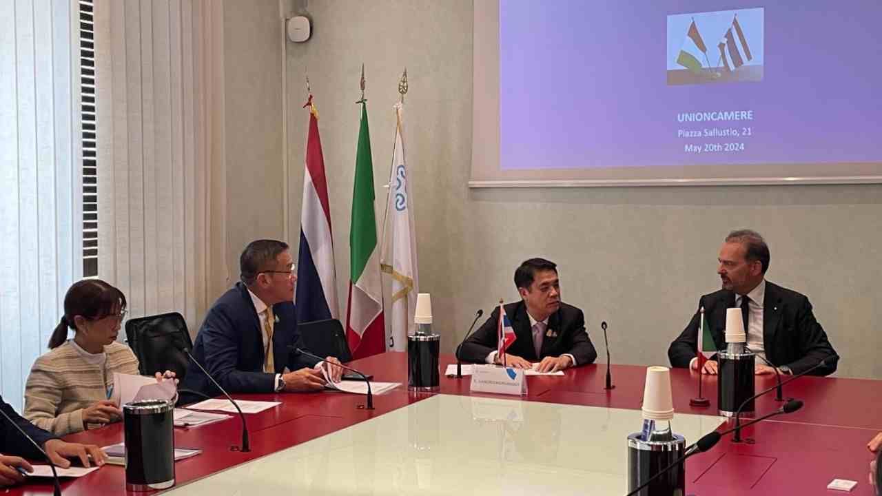 เมื่อวันที่ 20 พ.ค. 2567 นายเศรษฐา ทวีสิน นายกรัฐมนตรี ได้มอบหมายให้ นายสุริยะ จึงรุ่งเรืองกิจ รองนายกรัฐมนตรีและรัฐมนตรีว่าการกระทรวงคมนาคม เข้าร่วมและทำหน้าที่เป็นประธานกล่าวเปิด งาน Thai - Italian Business Forum ที่จัดขึ้นโดยกระทรวงการต่างประเทศและความร่วมมือระหว่างประเทศอิตาลี ร่วมกับสภาหอการค้าอิตาลี ณ สภาหอการค้าอิตาลี (Unioncamere) กรุงโรม สาธารณรัฐอิตาลี ร่วมกับประธานสภาหอการค้าอิตาลี (Mr. Andrea Prete) อธิบดีกรมส่งเสริมประเทศอิตาลี กระทรวงการต่างประเทศและความร่วมมือระหว่างประเทศอิตาลี นายสนั่น อังอุบลกุล ประธานหอการค้าไทยและสภาหอการค้าแห่งประเทศไทย และร่วมเป็นสักขีพยานพิธีลงนามในบันทึกความร่วมมือระหว่างสภาหอการค้าอิตาลีและสภาหอการค้าแห่งประเทศไทย ในการส่งเสริมความร่วมมือทางเศรษฐกิจ การแลกเปลี่ยนความรู้ความสามารถโดยเฉพาะด้านเทคโนโลยี และส่งเสริมการค้าและการลงทุนระหว่างไทยและอิตาลีให้เพิ่มมากขึ้น
