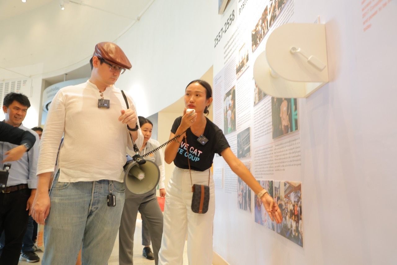 จากนั้นนำชมนิทรรศการไล่เรียงการชุมนุมของประชาชนตั้งแต่ช่วงปี 2557-2558 จนถึงปัจจุบัน นายรังสิมันต์ กล่าวว่า แม้การรัฐประหารผ่านมาแล้ว 10 ปี แต่เชื่อว่าประชาชนไม่ได้รู้สึกถึงความเปลี่ยนแปลง เพราะยังต้องอยู่กับปัญหาที่ระบอบ คสช. ทิ้งไว้ เช่น รัฐธรรมนูญ 2560 สมาชิกวุฒิสภา (สว.) ทุกวันนี้ พรรคการเมืองที่สืบทอดจาก คสช. ก็ยังเป็นพรรครัฐบาล จึงเป็นบทเรียนของสังคมว่าเราต้องช่วยกันทำให้สังคมไทยเป็นสังคมประชาธิปไตย เคารพต่อเสรีภาพการแสดงออก เคารพสิทธิมนุษยชน เรื่องเหล่านี้ไม่ได้เป็นเพียงคุณค่าในเชิงการเมืองเท่านั้น แต่มีความหมายต่อทางเศรษฐกิจ เพราะนักลงทุนก็อยากลงทุนในสังคมที่กฎหมายน่าเชื่อถือ ไม่มีการรัฐประหาร