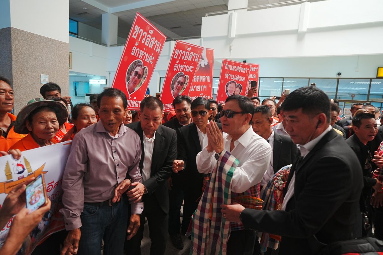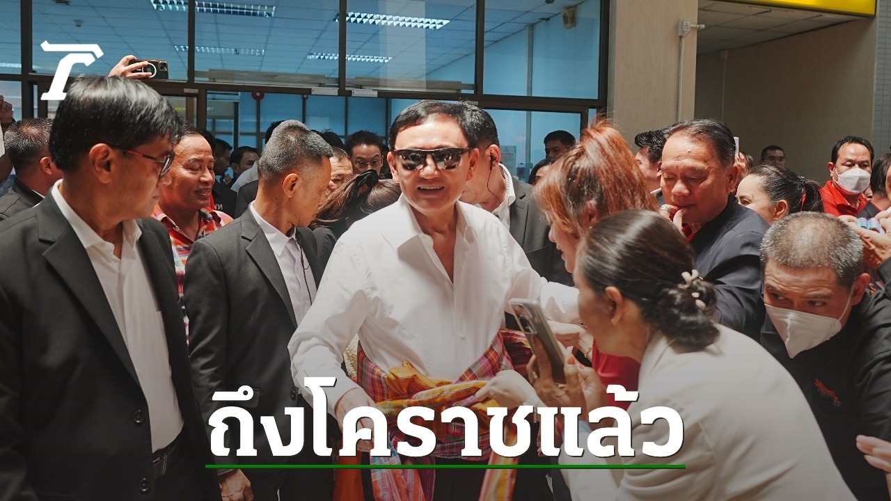 “ทักษิณ ชินวัตร” ควง “แพทองธาร-พานทองแท้” ไปโคราชร่วมงานฌาปนกิจอดีตคนขับรถคนสนิท มวลชนรับแน่นสนามบิน พร้อมตะโกน “เรารักทักษิณ” ด้าน “ประเสริฐ-สุดาวรรณ-สุทิน-สส.เพื่อไทย” ร่วมต้อนรับ