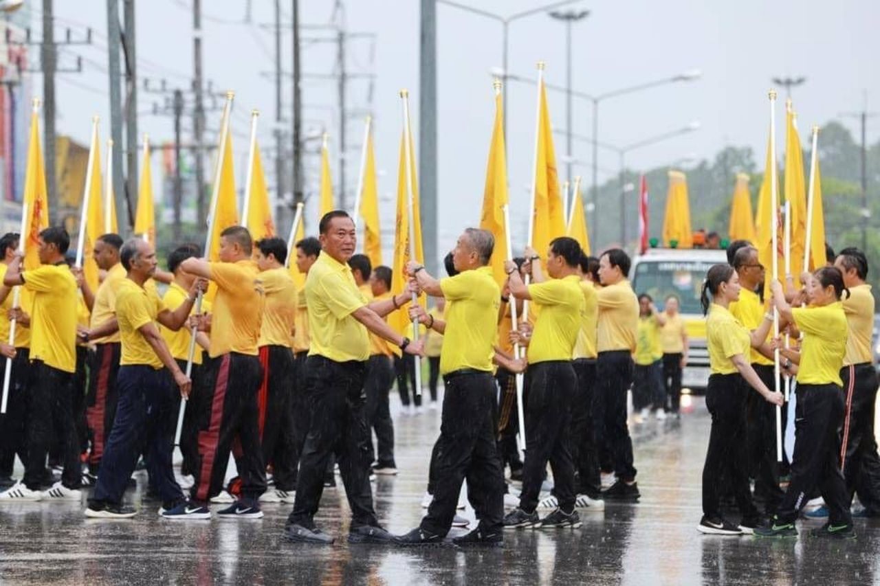 “ขอเชิญชวนพี่น้องประชาชนทุกจังหวัด ทุกพื้นที่ ทุกภูมิภาคของประเทศ ได้ร่วมแรงแข็งขัน ร้อยรวมดวงใจเข้าร่วมกิจกรรมเดิน วิ่ง ปั่น ธงตราสัญลักษณ์ฯ ที่จะจัดขึ้นในแต่ละจังหวัด เพื่อแสดงให้เห็นถึงพลังแห่งความสามัคคีของเราทุกคน และแสดงถึงความรักของคนไทยที่มีแด่พระบาทสมเด็จพระเจ้าอยู่หัว ด้วยการปฏิบัติบูชา ลุกขึ้นมาเดิน วิ่ง ปั่น ออกกำลังกาย เจริญรอยตามเบื้องพระยุคลบาทที่ทรงเป็นต้นแบบของการดูแลรักษาสุขภาพให้แข็งแรง ทั้งนี้ สำหรับหน่วยงาน องค์กร หรือพี่น้องประชาชนที่มีความปรารถนาตั้งใจอยากจะสนับสนุนอาหาร อาหารว่าง หรือน้ำดื่ม สำหรับการจัดกิจกรรมของแต่ละจังหวัด สามารถแจ้งความประสงค์ได้ที่ที่ทำการปกครองจังหวัด หรือสำนักงานจังหวัด ซึ่งตั้งอยู่ที่อาคารศาลากลางจังหวัด หรือแจ้งที่ที่ทำการปกครองอำเภอ ณ ที่ว่าการอำเภอทั่วประเทศ หรือสอบถามรายละเอียดเพิ่มเติมได้ที่สายด่วนศูนย์ดำรงธรรม 1567 โทรฟรีตลอด 24 ชั่วโมง” นายสุทธิพงษ์ กล่าวในช่วงท้าย
