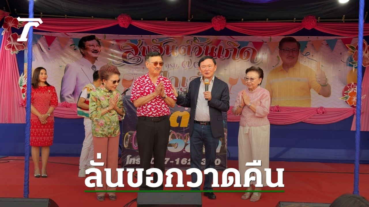 ทักษิณ ชินวัตร อดีตนายกรัฐมนตรี ร่วมงานวันเกิด ครบ 79 ปี นายกเทศมนตรีนครนนทบุรี ดีใจที่วันนี้ได้มาพบ ลั่น "จากนี้จะกวาดหมดในนนทบุรี บอก มีคนกวาดไปเดี๋ยวเราจะกวาดคืน"