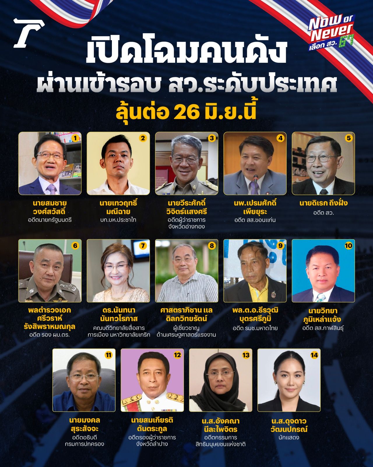 เช็กรายชื่อ คนเด่น คนดัง ผู้สมัคร สว. ที่ผ่านรอบคัดเลือกระดับจังหวัด ได้ไปลุ้นกันต่อในระดับประเทศ เพื่อเป็นตัวจริง 26 มิถุนายน นี้