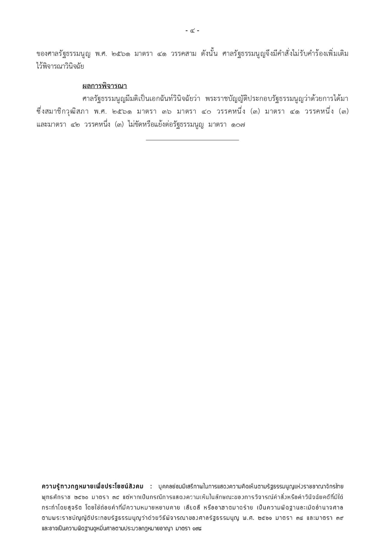 โดยศาลรัฐธรรมนูญพิจารณาโดยการอภิปรายแล้วเห็นว่า