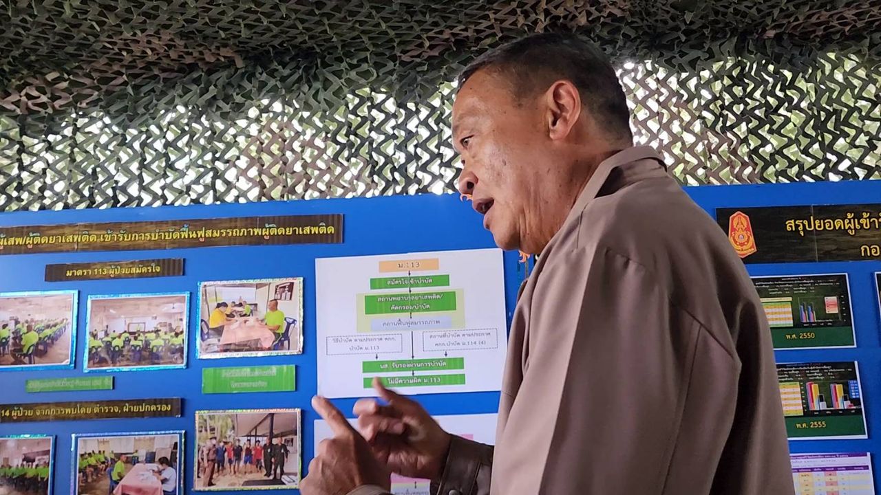โดยจุดแรก นายกฯ เดินทางไปยัง มณฑลทหารบกที่ 38 เพื่อติดตามตรวจเยี่ยมการบำบัดรักษาฟื้นฟูผู้ติดยาเสพติด ซึ่งเจ้าหน้าที่รายงานนายกฯ เกี่ยวกับการบำบัดยาเสพติด สถานที่บำบัดแห่งนี้ดำเนินการมาตั้งแต่ปี 2549 บำบัดไปแล้วกว่า 4,168 คน และตั้งแต่เดือน พ.ค. ถึงปัจจุบัน มีผู้เต็มใจเข้าบำบัดจำนวน 37 คน ซึ่งส่วนใหญ่มาจากความสมัครใจ และอีกส่วนมาตามกระบวนการที่เจ้าหน้าที่นำส่งมา โดยวิธีการบำบัดจะใช้เวลา 120 วัน ให้ผู้บำบัดเลิกยาเสพติดและฝึกอาชีพเพื่อให้เขาได้กลับเข้าสู่สังคม และเมื่อบำบัดเสร็จแล้วจะมีเจ้าหน้าที่สาธารณสุขและหน่วยงานที่เกี่ยวข้องติดตามไปเก็บข้อมูล