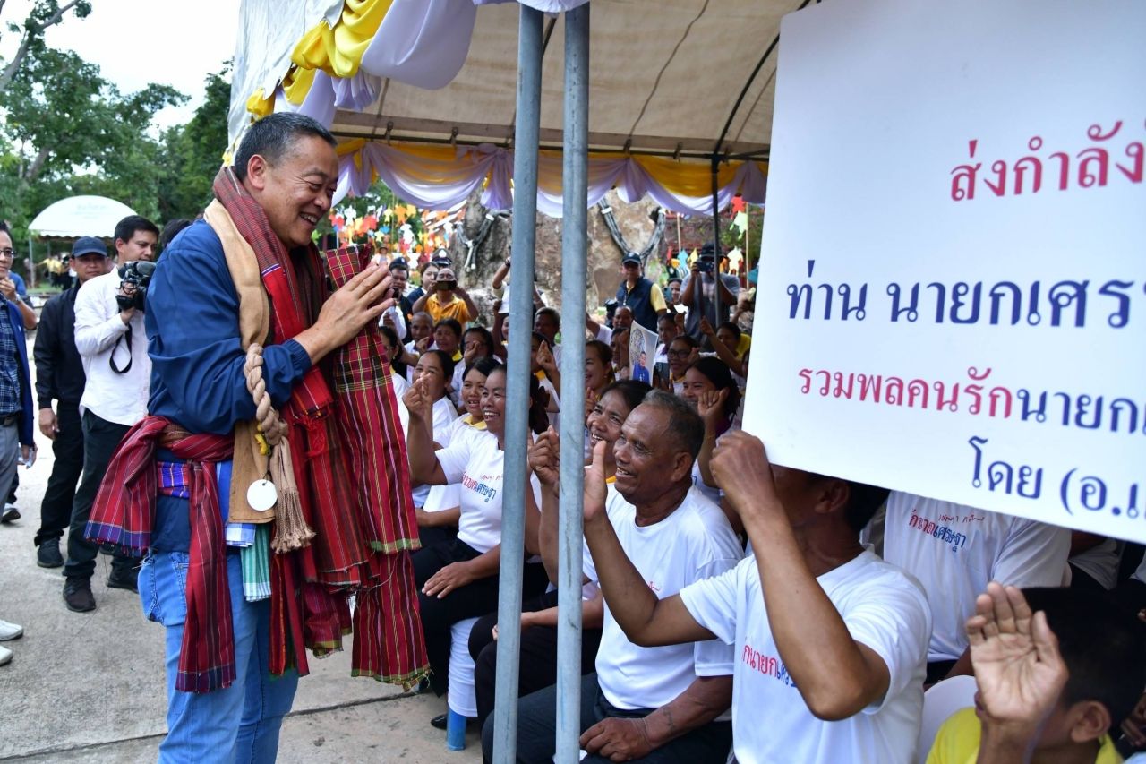 พร้อมกันนี้ นายกรัฐมนตรีถวายความเคารพพระบรมฉายาลักษณ์พระบาทสมเด็จพระเจ้าอยู่หัว และพูดคุยกับประชาชนที่มารอต้อนรับ ซึ่งมีประชาชนนำผ้าขาวม้ามาคาดเอวให้ จากนั้นจึงพร้อมด้วยและคณะนั่งรถรางไฟฟ้าไปยังวิทยาลัยเทคโนโลยีหลวงปู่สรวง เพื่อเป็นประธานพิธีเปิดโครงการ 72 ล้านต้น พลิกฟื้นผืนป่า โดยนายกรัฐมนตรีได้ปลูกต้นลำดวน ซึ่งเป็นต้นไม้ประจำจังหวัดศรีสะเกษ พร้อมกับคณะผู้ติดตาม หัวหน้าหน่วยราชการ ประชาชน ซึ่งร่วมปลูกกล้าไม้ยางนาและพะยูง ก่อนถ่ายภาพร่วมกับคณะผู้บริหารกระทรวงทรัพยากรธรรมชาติและสิ่งแวดล้อม นักศึกษาวิทยาลัยเทคโนโลยีหลวงปู่สรวง วัดไพรพัฒนา ด้วยบรรยากาศที่เป็นกันเอง