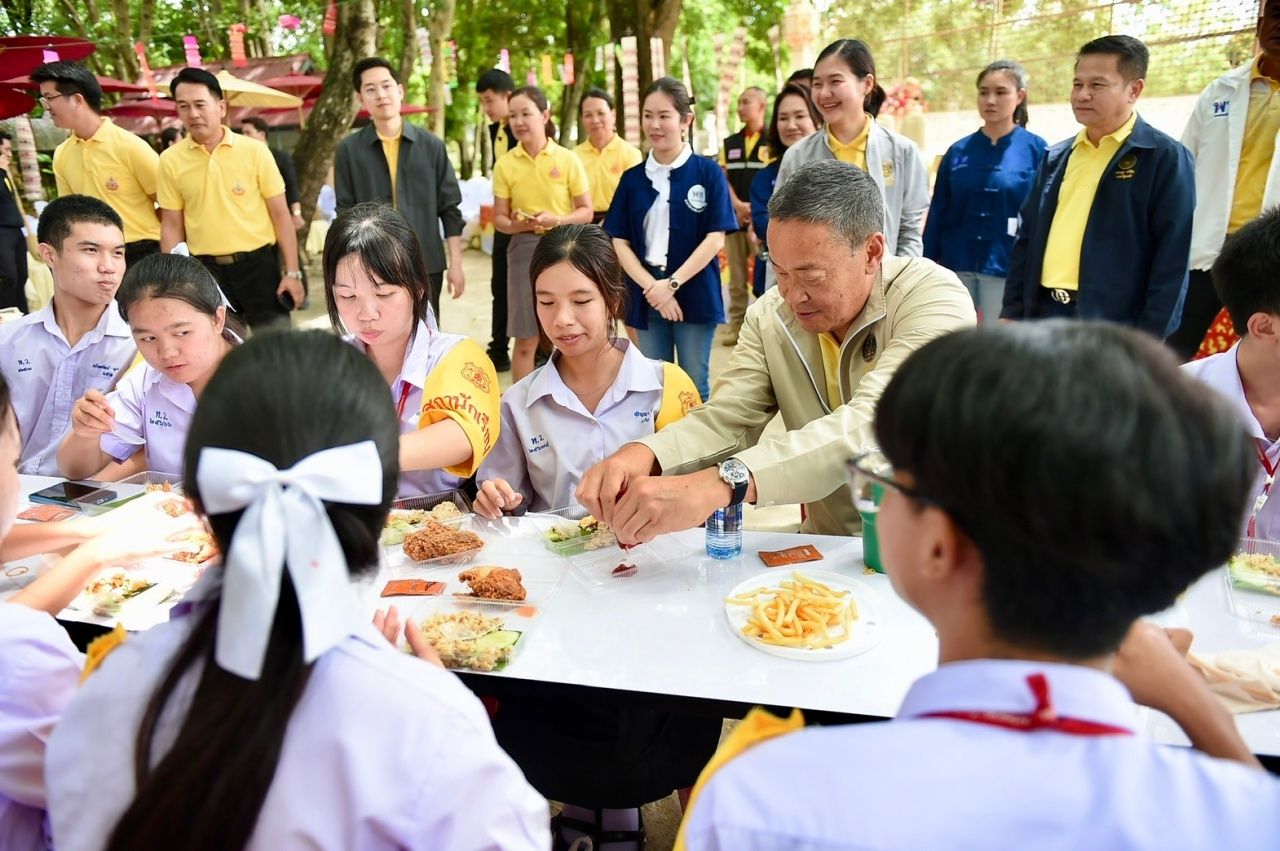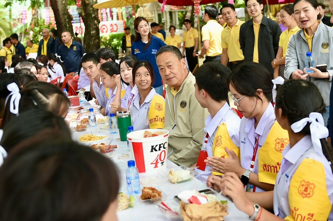 ผู้สื่อข่าวรายงานว่า จากนั้น นายกฯ ได้ร่วมกับประทานอาหารกลางวันกับเด็กนักเรียน โดยนายกฯ ได้ซื้อไก่เคเอฟซีมาแจกเด็กๆ เป็นมื้ออาหารกลางวัน