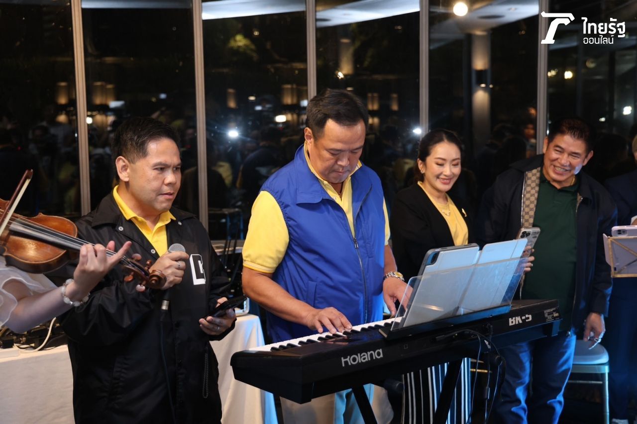 ผู้สื่อข่าวรายงานเพิ่มเติมว่า ภายหลังงานเลี้ยง นายอนุทิน ชาญวีรกูล รองนายกรัฐมนตรีและรัฐมนตรีว่าการกระทรวงมหาดไทย ขึ้นเวทีได้ร้องเพลงรักเธอนิรันดร์ โดยท่อนท้ายของเพลงที่ร้องว่า “ฉันจะอยู่เพื่อรักเธอตลอดไป แม้สิ้นลมหายใจ ไอเลิฟยู...” พร้อมเดินมาที่ น.ส.แพทองธาร ชินวัตร หัวหน้าพรรคเพื่อไทย โดย น.ส.แพทองธาร ได้ยกมือขอบคุณ นอกจากนี้ แกนนำพรรคร่วมรัฐบาลยังได้ร่วมกันร้องเพลงเราและนาย ด้วย.