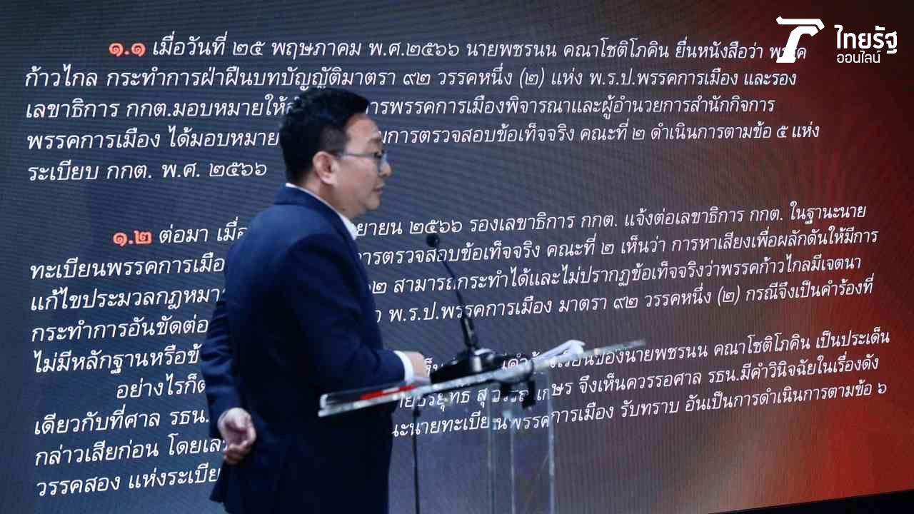 วันที่ 16 ก.ค. 2567 นายชัยธวัช ตุลาธน สส.บัญชีรายชื่อและหัวหน้าพรรคก้าวไกล แถลงถึงการต่อสู้คดียุบพรรคก้าวไกล ที่ หลังตรวจพยานหลักฐานแล้ว ว่า วันนี้พรรคก้าวไกลได้ส่งทีมกฎหมายไปส่งเอกสารคำร้องสองฉบับต่อศาลรัฐธรรมนูญ ซึ่งแบ่งเป็นสองส่วนสำคัญ