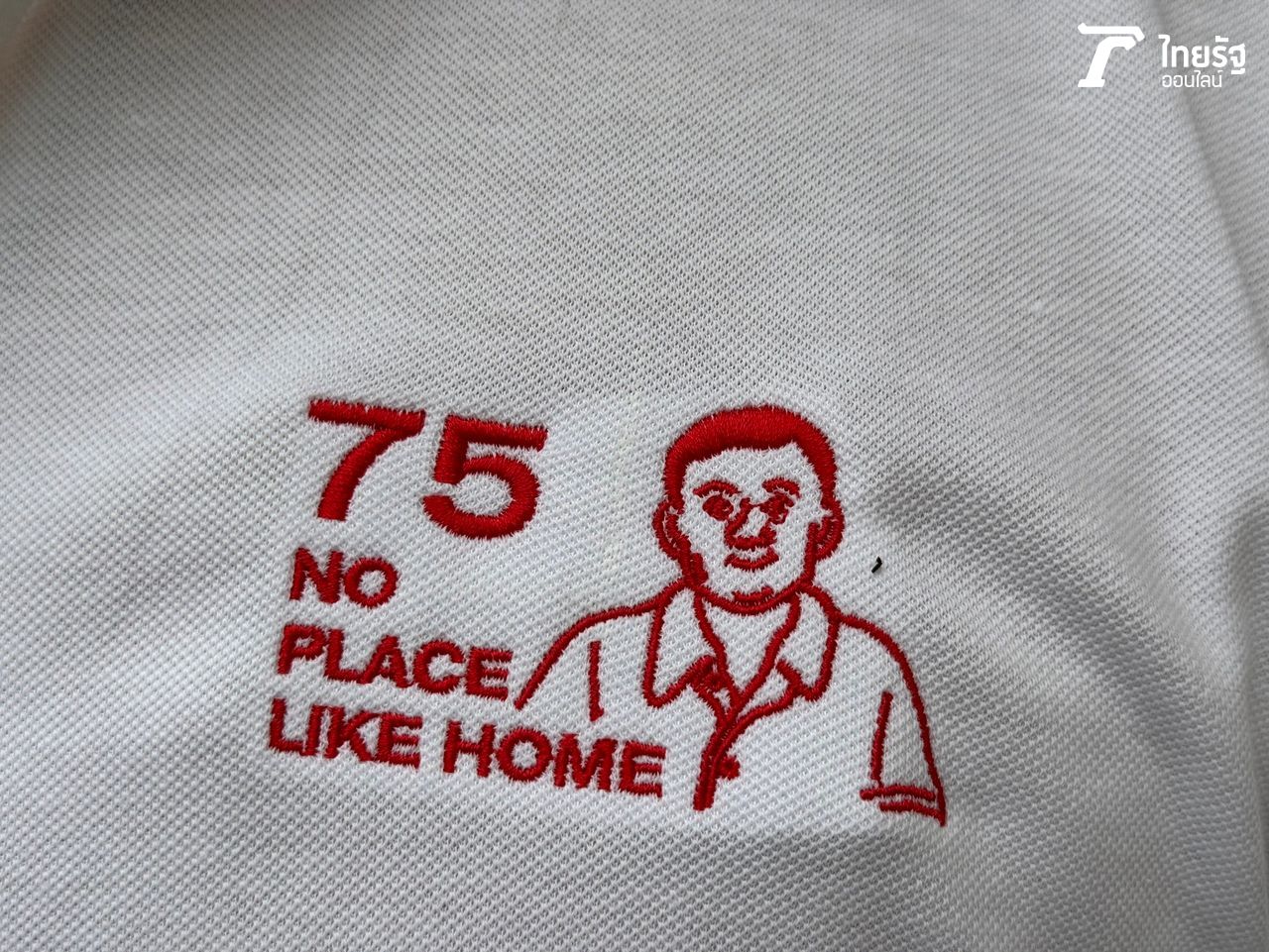 โดยวันนี้ทุกคนใส่เสื้อสีขาว พร้อมกับมีการปักข้อความ “75 NO PLACE LIKE HOME” มีความหมายว่า 75 ปี ไม่มีที่ไหนเหมือนบ้าน และมีรูปของ นายทักษิณ อยู่บนหน้าอก