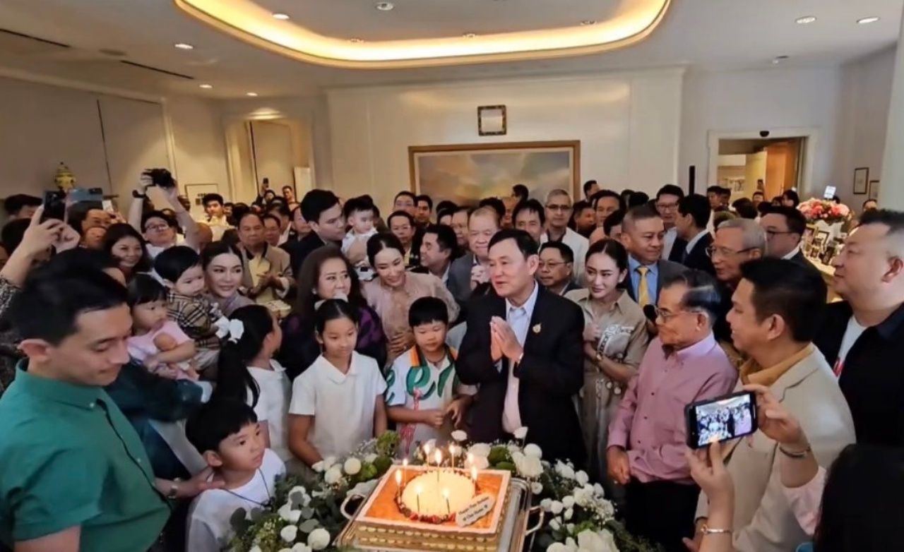 “ทักษิณ ชินวัตร” เป่าเค้กครบ 75 ปี ลั่น ไม่เคยคิดจะมีวันนี้ บอกมีความสุขที่สุด ยิ้มทั้งวัน อยู่ที่ไหนก็ไม่เท่าอยู่บ้าน ชี้ ปัญหาบ้านเมืองไม่ใช่เพื่อไทยคนอื่นแก้ไม่ได้ เผยสุขใจได้อยู่ไทยฉลอง 72 ปีในหลวง ด้าน “อิ๊งค์” ปลื้ม คำขอเป็นจริง พ่อได้กลับบ้าน ลูกๆ รวมเงินซื้อเปียโนให้เป็นของขวัญ