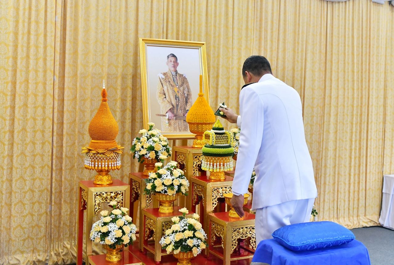 ทั้งนี้ นายกรัฐมนตรีได้เดินขึ้นสู่เวทีใหญ่ ถวายความเคารพหน้าพระบรมฉายาลักษณ์พระบาทสมเด็จพระเจ้าอยู่หัว รัชกาลที่ 10 แล้วถวายธูปเทียนแพ เปิดกรวยกระทงดอกไม้ ถวายเครื่องราชสักการะหน้าพระบรมฉายาลักษณ์ จากนั้น นายกรัฐมนตรี กล่าวถวายพระพรชัยมงคล และกล่าวนำถวายสัตย์ปฏิญาณเพื่อเป็นข้าราชการที่ดีและพลังของแผ่นดิน หน้าพระบรมฉายาลักษณ์ฯ ความว่า