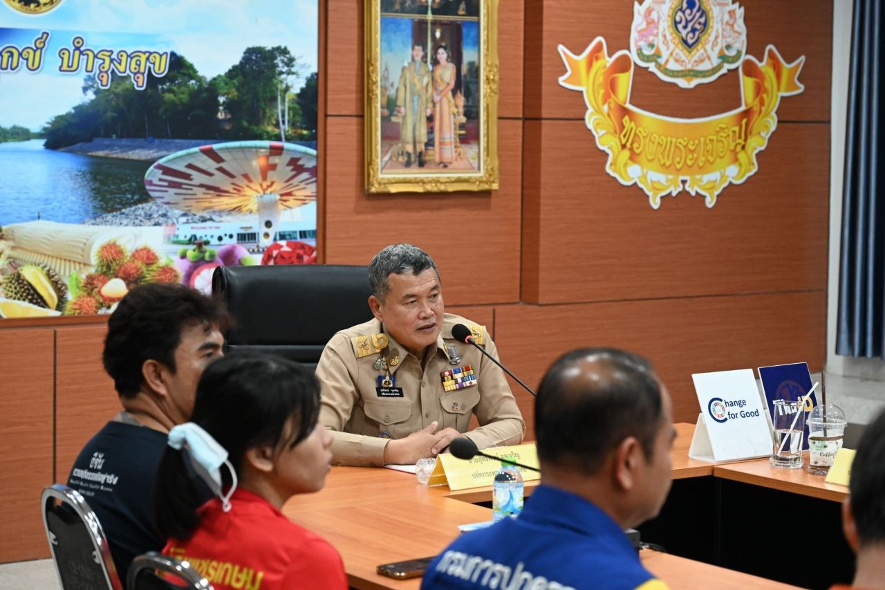 “ขอให้ผู้ว่าราชการจังหวัดตราด มอบหมายให้ท้องถิ่นจังหวัดตราด โยธาธิการและผังเมืองจังหวัดตราด บูรณาการร่วมกับผู้บริหารองค์กรปกครองส่วนท้องถิ่น ใช้ผังลุ่มน้ำชุมชนที่องค์กรปกครองส่วนท้องถิ่นได้สำรวจตามผังภูมิสังคม (Geo-Social Map) เพื่อร่วมกันบริหารจัดการน้ำ โดยจัดทำเป็นแผนปฏิบัติการป้องกันและบรรเทาสาธารณภัยของจังหวัด ร่วมกับหน่วยงานชลประทาน ผู้นำท้องที่ ผู้บริหารองค์กรปกครองส่วนท้องถิ่น และภาคีเครือข่าย รวมถึงการวางระบบเตือนภัยก่อนการเกิดภัยพิบัติ โดยสิ่งสำคัญของการบริหารจัดการน้ำตามศาสตร์พระราชาที่พระบาทสมเด็จพระบรมชนกาธิเบศร มหาภูมิพลอดุลยเดชมหาราช บรมนาถบพิตร ได้พระราชทานไว้ให้คือ การทำให้พื้นที่มีจุดพักน้ำ หรือหลุมขนมครก ด้วยการขุดและทำฝายเพื่อให้มีพื้นที่สามารถกักเก็บน้ำได้ ควบคู่กับการฟื้นฟูพื้นที่ป่า เพราะต้นไม้เปรียบเสมือนธนาคารน้ำใต้ดินระบบปิดที่สามารถกักเก็บมวลน้ำได้มาก อันจะช่วยบรรเทาการเกิดอุทกภัยและภัยพิบัติ”