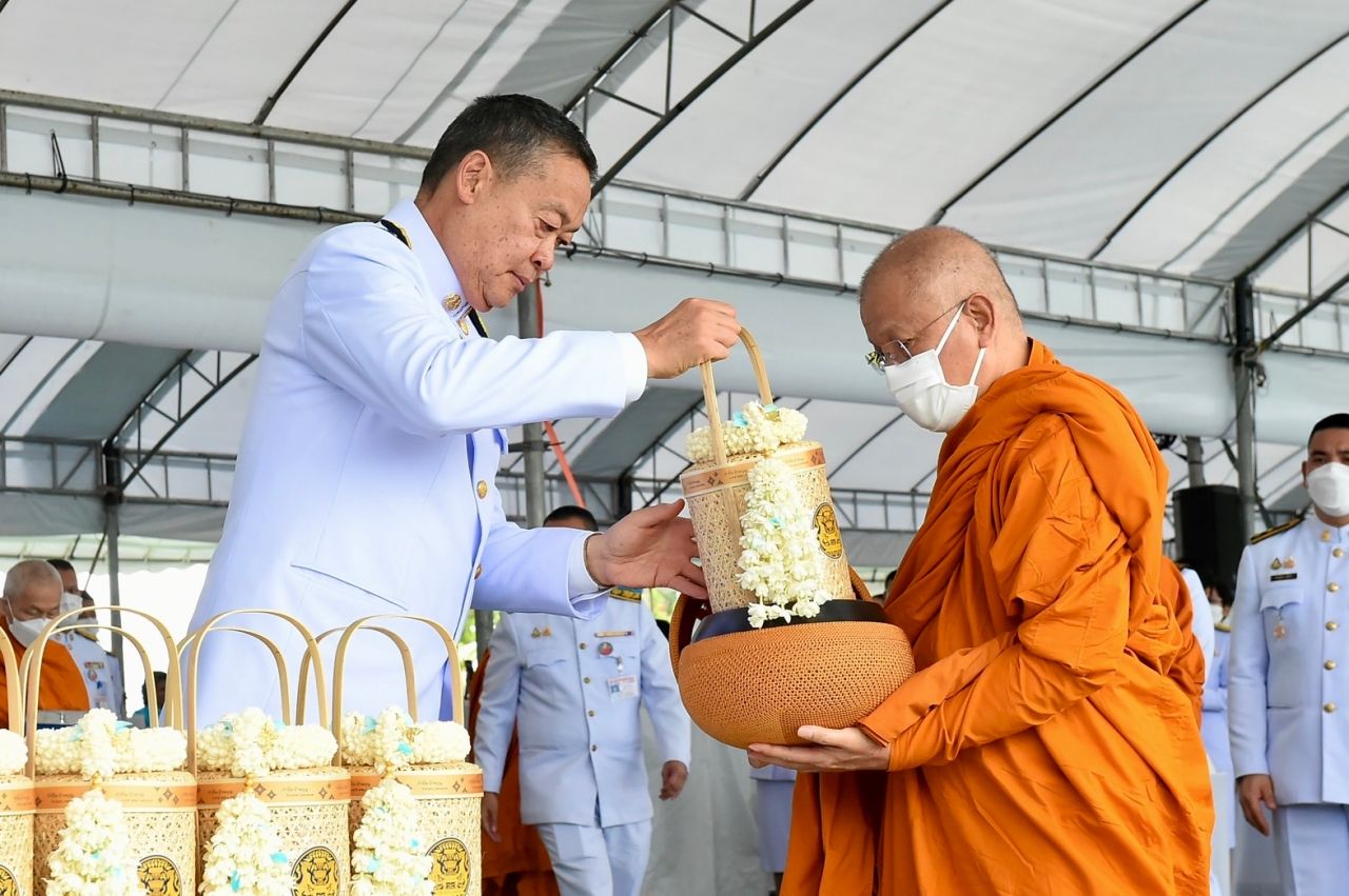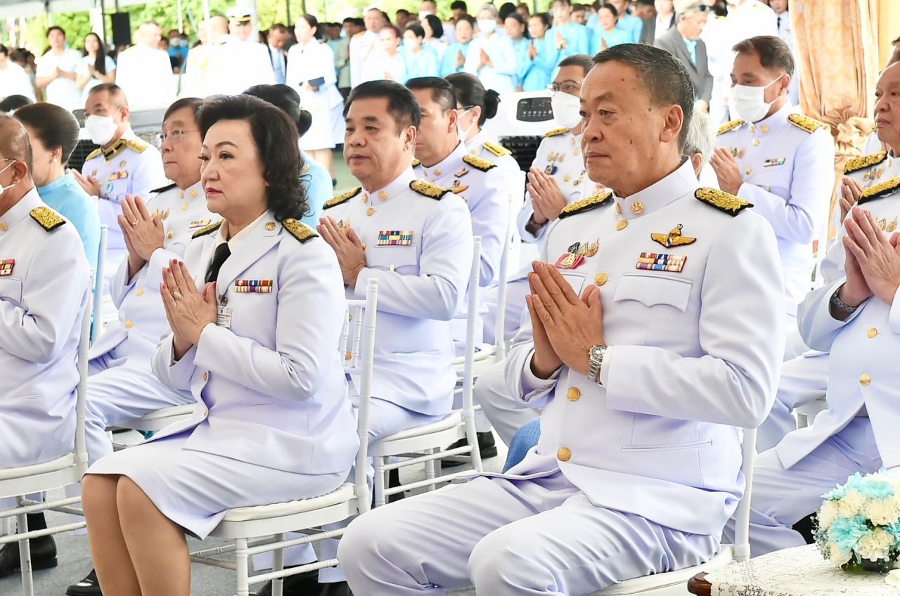 โดยเมื่อนายกรัฐมนตรีเดินทางถึงปะรำพิธีท้องสนามหลวง สมเด็จพระราชาคณะ พระราชาคณะ จำนวน 10 รูป ขึ้นนั่งอาสน์สงฆ์ นายกรัฐมนตรีจุดธูปเทียนบูชาพระรัตนตรัย ถวายคำนับและถวายธูปเทียนแพหน้าพระฉายาลักษณ์ สมเด็จพระนางเจ้าสิริกิติ์ พระบรมราชินีนาถ พระบรมราชชนนีพันปีหลวง เจ้าหน้าที่อาราธนาศีล สมเด็จพระราชาคณะ พระราชาคณะ จำนวน 10 รูป ให้ศีล พระสงฆ์เจริญพระพุทธมนต์