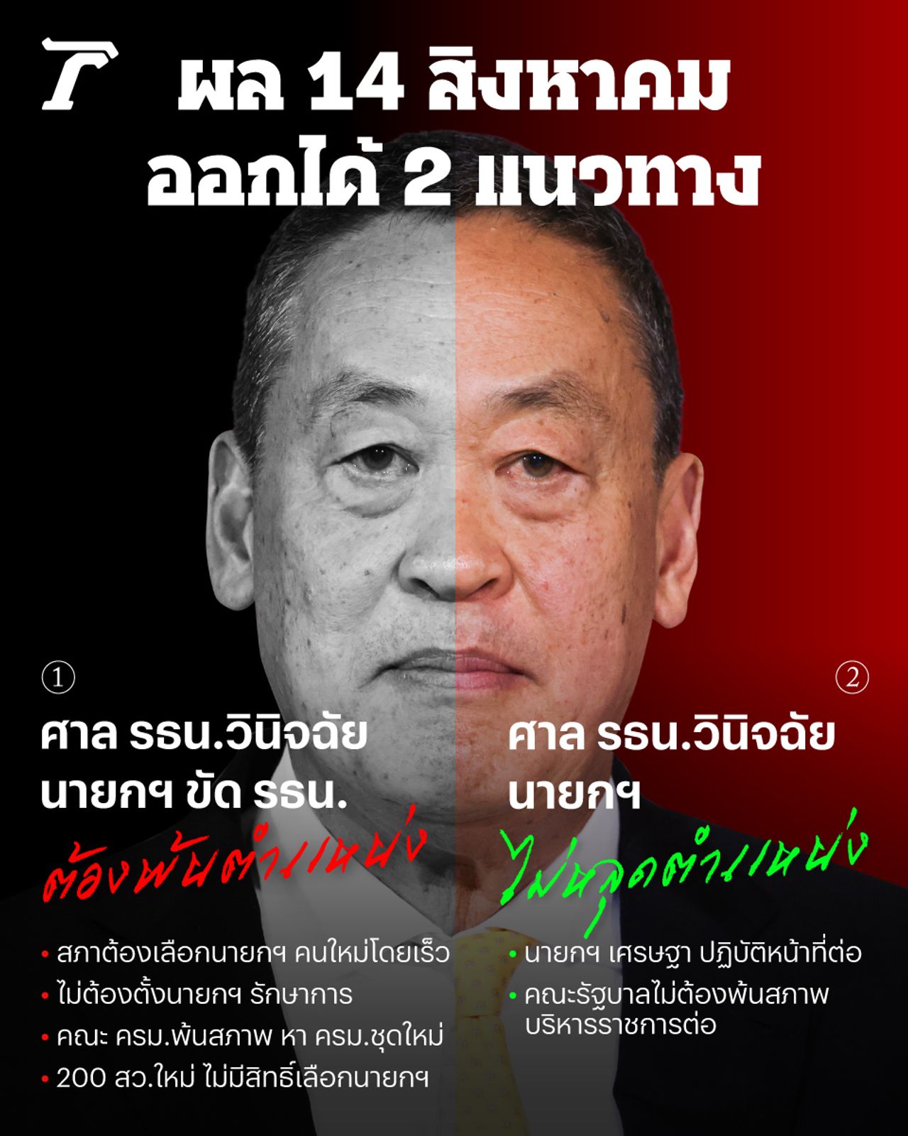 ถ้านายกฯ ต้องออกจากตำแหน่ง รัฐบาลชุดปัจจุบันก็ต้องพ้นไปด้วย และหารัฐมนตรีชุดใหม่โดยเร็ว และรัฐธรรมนูญก็ไม่ได้กำหนดต้องหานายกฯ ภายในกี่วัน