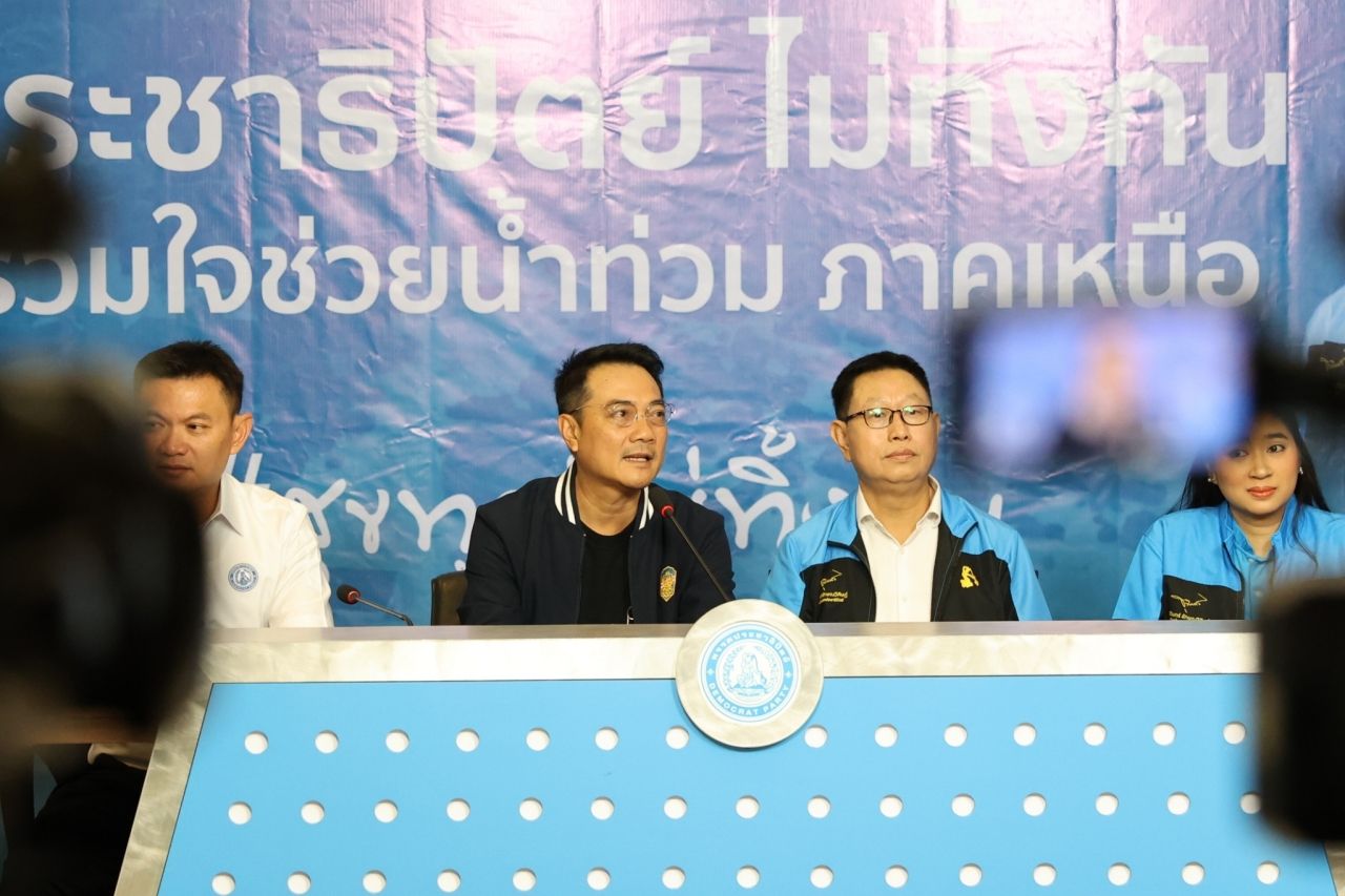 ทางด้านนายนราพัฒน์ กล่าวเสริมว่า ในขณะนี้มวลน้ำได้อยู่ทางตอนบนของภาคเหนือตอนบน และในอีกระยะจะเข้าสู่พื้นที่ภาคเหนือตอนล่าง ทางพรรคได้ทำงานร่วมกับมูลนิธิ ม.ร.ว.เสนีย์ ปราโมช เพื่อติดตามสถานการณ์ และจัดสรรถุงยังชีพเข้าช่วยเหลือในเบื้องต้น ขณะเดียวกันพบว่าขณะนี้ในพื้นที่อุทกภัยจะมีความสับสน ทำให้การติดต่อหน่วยงานเป็นไปด้วยความยากลำบาก ทำให้ทางพรรคได้รับการติดต่อผ่านช่องทางโซเชียลมีเดียถึงความเดือดร้อนของพี่น้องประชาชนว่ายังไม่มีหน่วยงานเข้าดูแลช่วยเหลืออย่างทั่วถึง