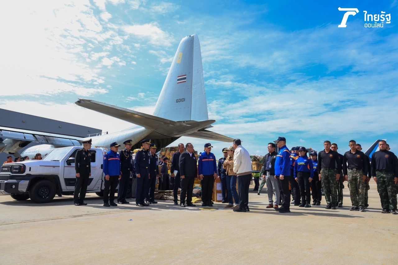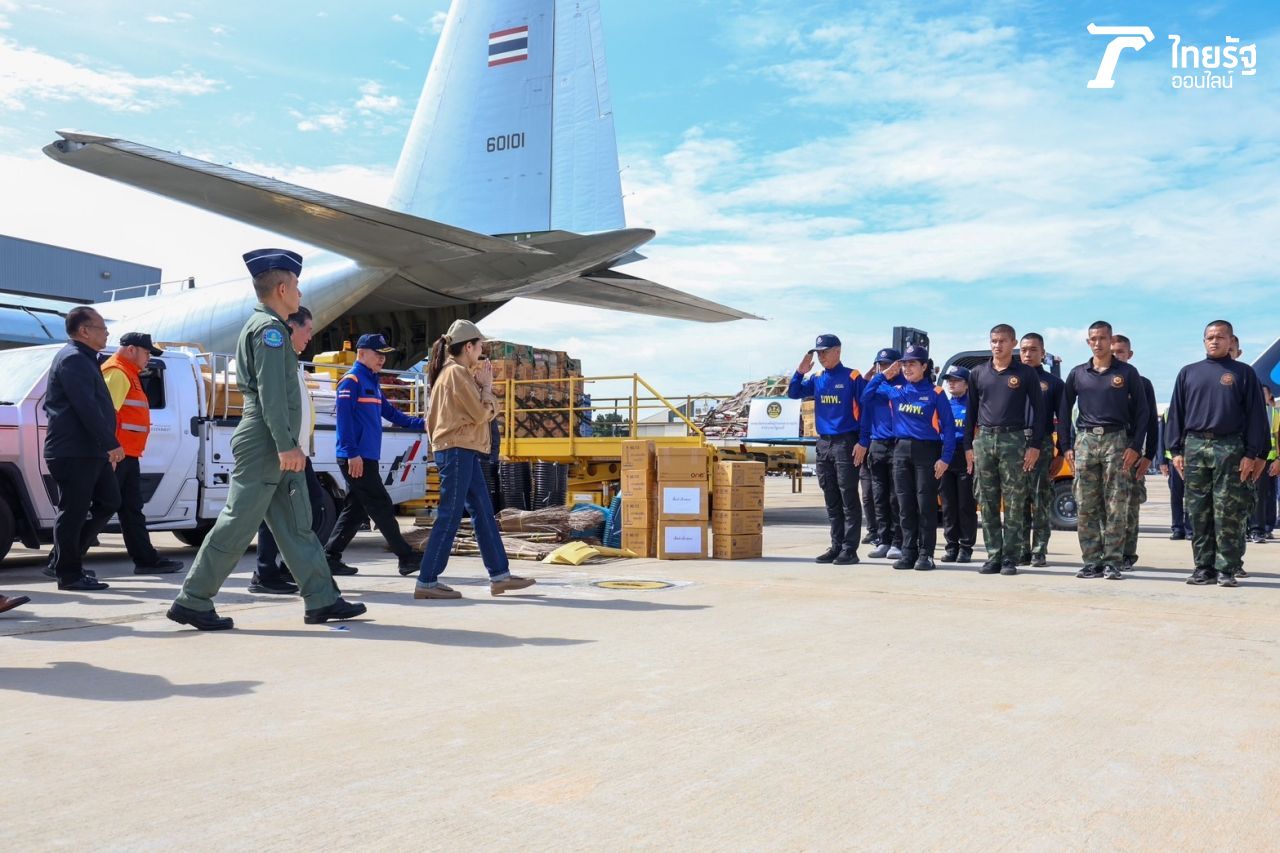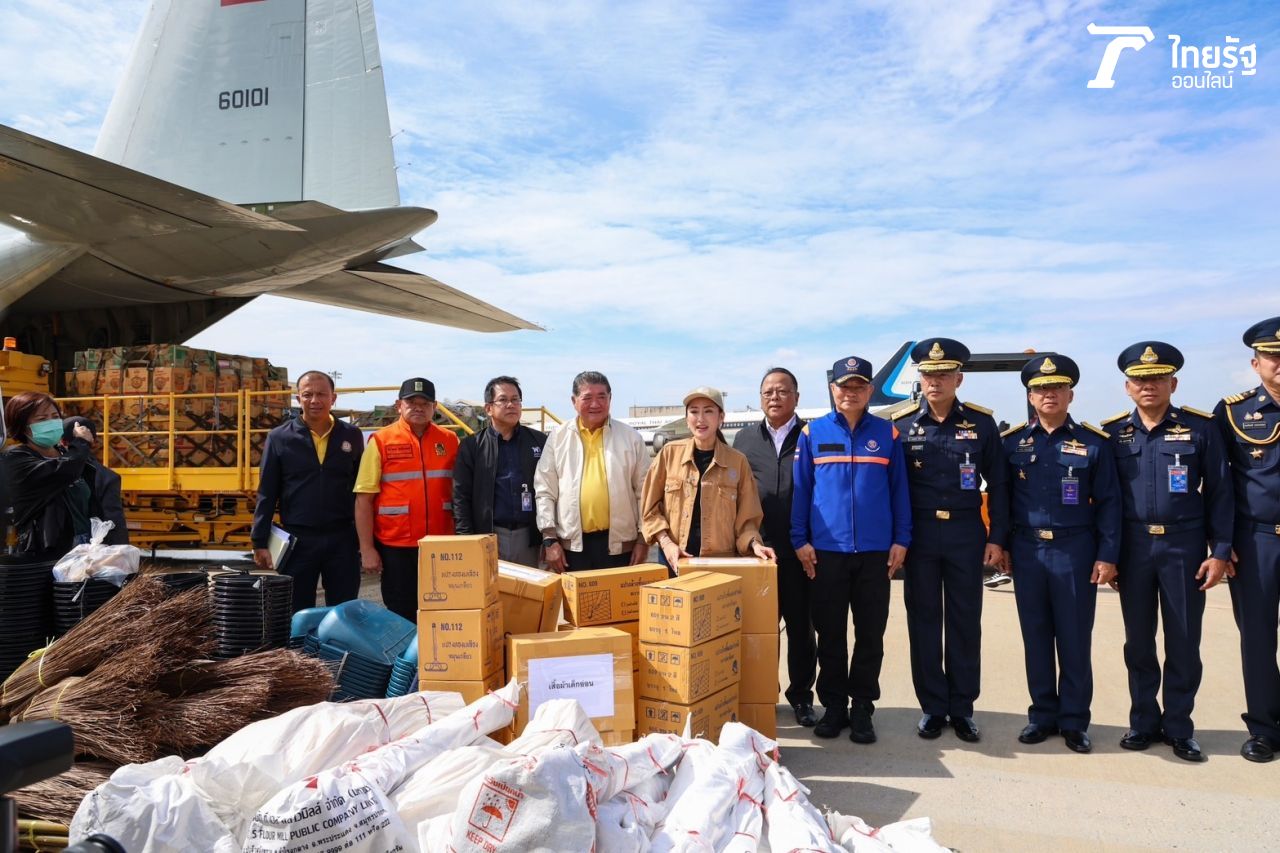 เมื่อเวลา 09.30 น. วันที่ 22 กันยายน 2567 น.ส.แพทองธาร ชินวัตร นายกรัฐมนตรี ส่งมอบสิ่งของอุปโภค-บริโภค และอุปกรณ์ทำความสะอาดที่ได้รับจากเอกชนและหน่วยงานต่างๆ ภายใต้ “โครงการประสานพลัง ประสานใจ” เพื่อส่งมอบให้กับพี่น้องประชาชนผู้ประสบภัยใน จ.เชียงราย โดยเครื่องบินกองทัพอากาศ (C130) ที่ท่าอากาศยานทหาร 2 กองบิน 6 ดอนเมือง กทม. โดยมี นายภูมิธรรม เวชยชัย รองนายกรัฐมนตรีและรัฐมนตรีว่าการกระทรวงกลาโหม นายไชยวัฒน์ จุนถิระพงศ์ อธิบดีกรมป้องกันและบรรเทาสาธารณภัย (ปภ.) นายธีระพงษ์ วงศ์ศิวะวิลาส ปลัดสำนักนายกรัฐมนตรี (สปน.) และ พล.อ.ธีระยุทธ จินหิรัญ ผู้บัญชาการหน่วยบัญชาการทหารพัฒนา (ผบ.นทพ.) เป็นผู้แทนผู้บัญชาการทหารสูงสุด (ผบ.ทสส.) กองทัพอากาศ กองบัญชาการกองทัพไทย ร่วมส่งมอบ