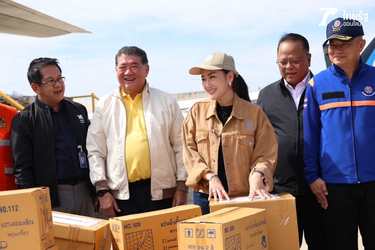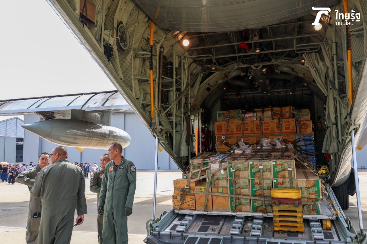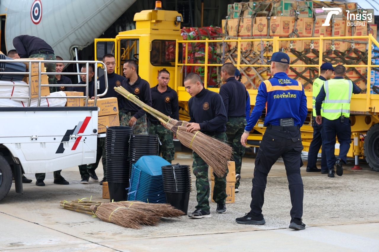 เมื่อเวลา 09.30 น. วันที่ 22 กันยายน 2567 น.ส.แพทองธาร ชินวัตร นายกรัฐมนตรี ส่งมอบสิ่งของอุปโภค-บริโภค และอุปกรณ์ทำความสะอาดที่ได้รับจากเอกชนและหน่วยงานต่างๆ ภายใต้ “โครงการประสานพลัง ประสานใจ” เพื่อส่งมอบให้กับพี่น้องประชาชนผู้ประสบภัยใน จ.เชียงราย โดยเครื่องบินกองทัพอากาศ (C130) ที่ท่าอากาศยานทหาร 2 กองบิน 6 ดอนเมือง กทม. โดยมี นายภูมิธรรม เวชยชัย รองนายกรัฐมนตรีและรัฐมนตรีว่าการกระทรวงกลาโหม นายไชยวัฒน์ จุนถิระพงศ์ อธิบดีกรมป้องกันและบรรเทาสาธารณภัย (ปภ.) นายธีระพงษ์ วงศ์ศิวะวิลาส ปลัดสำนักนายกรัฐมนตรี (สปน.) และ พล.อ.ธีระยุทธ จินหิรัญ ผู้บัญชาการหน่วยบัญชาการทหารพัฒนา (ผบ.นทพ.) เป็นผู้แทนผู้บัญชาการทหารสูงสุด (ผบ.ทสส.) กองทัพอากาศ กองบัญชาการกองทัพไทย ร่วมส่งมอบ