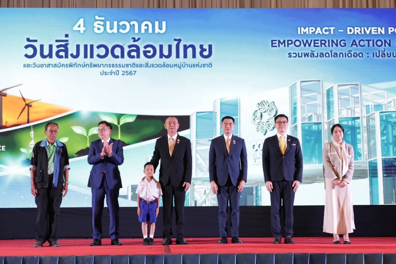 วันที่ 4 ธันวาคม 2567 ที่โรงแรมเซ็นทารา ไลฟ์ ศูนย์ราชการและคอนเวนชันเซ็นเตอร์ กระทรวงทรัพยากรธรรมชาติและสิ่งแวดล้อม โดยกรมการเปลี่ยนแปลงสภาพภูมิอากาศและสิ่งแวดล้อม เปิดกิจกรรมเนื่องในวันสิ่งแวดล้อมไทยและวันอาสาสมัครพิทักษ์ทรัพยากรธรรมชาติและสิ่งแวดล้อมหมู่บ้านแห่งชาติ ประจำปี 2567 ภายใต้แนวคิด “Impact – Driven Policy: Empowering Action for Change รวมพลังลดโลกเดือด: เปลี่ยนเรา เปลี่ยนโลก” พร้อมเปิดเวทีนำเสนอผลการประชุม COP29 มุ่งยกระดับความร่วมมือภาครัฐ ภาคเอกชน ภาคประชาสังคม แก้ไขปัญหาการเปลี่ยนแปลงสภาพภูมิอากาศของประเทศไทยสู่เป้าหมายระดับโลก โดยมีนายเฉลิมชัย ศรีอ่อน รัฐมนตรีว่าการกระทรวงทรัพยากรธรรมชาติและสิ่งแวดล้อม เป็นประธานในพิธีเปิดงาน
