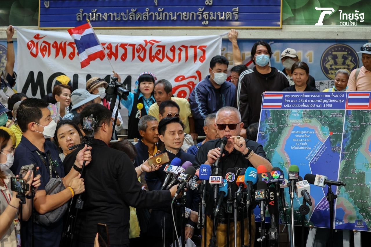 เมื่อเวลา 09.38 น. วันที่ 9 ธันวาคม 2567 นายสนธิ ลิ้มทองกุล อดีตแกนนำพันธมิตรประชาชนเพื่อประชาธิปไตย เดินทางมาถึงศูนย์รับเรื่องราวร้องทุกข์ ทำเนียบรัฐบาล โดยทันทีที่นายสนธิลงจากรถ มวลชนต่างตะโกนว่า “สนธิสู้ๆ” โดยวันนี้มีนายปานเทพ พัวพงษ์พันธ์ คณบดีวิทยาลัยการแพทย์แผนตะวันออก มหาวิทยาลัยรังสิต, นายนิติธร ล้ำเหลือ หรือ ทนายนกเขา อดีตทนายความ กปปส. รวมถึงมวลชนมารวมตัวกัน เพื่อยื่นหนังสือถึง น.ส.แพทองธาร ชินวัตร นายกรัฐมนตรี ให้ยกเลิก MOU 2544 และ JC 2544 พร้อมนำสไลด์แผนที่แสดงภาพ ส.ค.ส. พ.ศ. 2547 ซึ่งเป็นภาพแผนที่ตามพระบรมราชโองการ ประกาศกำหนดเขตไหล่ทวีปของประเทศไทยด้านอ่าวไทย พ.ศ. 2516 มาแสดง