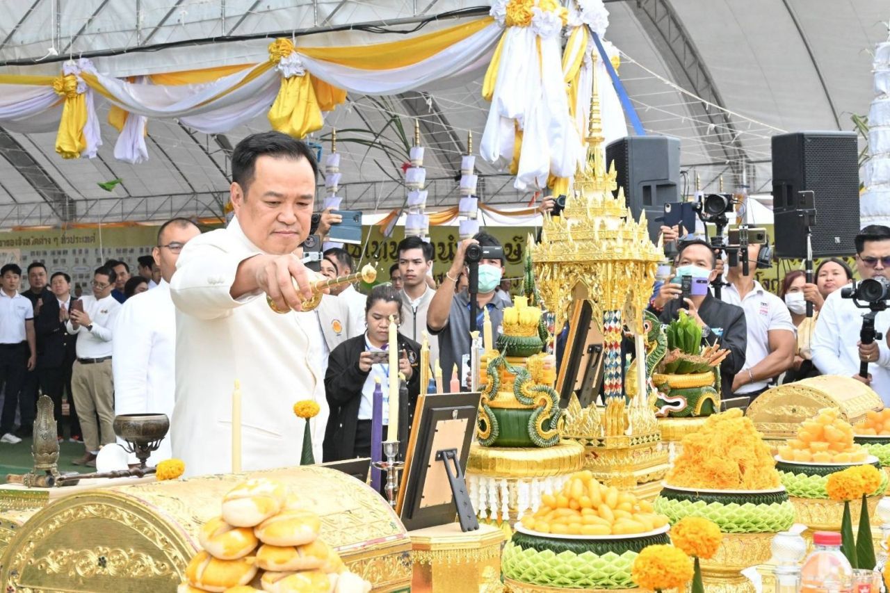“อนุทิน” นำพุทธศาสนิกชนเททองหล่อ “พระพุทธโลกนาถนาคาไชยบุรี”