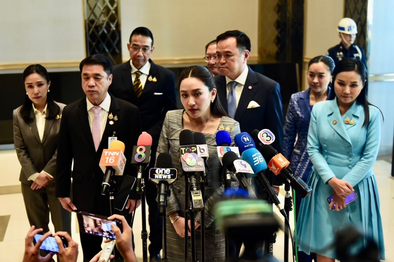 พร้อมกันนี้ น.ส.แพทองธาร ยังได้ให้สัมภาษณ์ถึงความเหนียวแน่นของพรรคร่วมรัฐบาล โดยหันไปกล่าวกับ นายอนุทิน ชาญวีรกูล รองนายกรัฐมนตรีและรัฐมนตรีว่าการกระทรวงมหาดไทย ที่ยืนอยู่ด้านหลังพร้อมหัวเราะก่อนกล่าวว่า “ยังแน่นแฟ้นไหม” ทำให้ นายอนุทิน หัวเราะและตอบว่า “แน่นแฟ้น” ก่อนที่นายกรัฐมนตรีจะผายมือหันไปถาม นายสุริยะ จึงรุ่งเรืองกิจ รองนายกรัฐมนตรีและรัฐมนตรีว่าการกระทรวงคมนาคม รวมถึงนางนฤมล ภิญโญสินวัฒน์ รัฐมนตรีว่าการกระทรวงเกษตรสหกรณ์ ที่เดินตามมา โดยทุกคนยิ้มและพร้อมกับตอบว่าแน่นแฟ้น