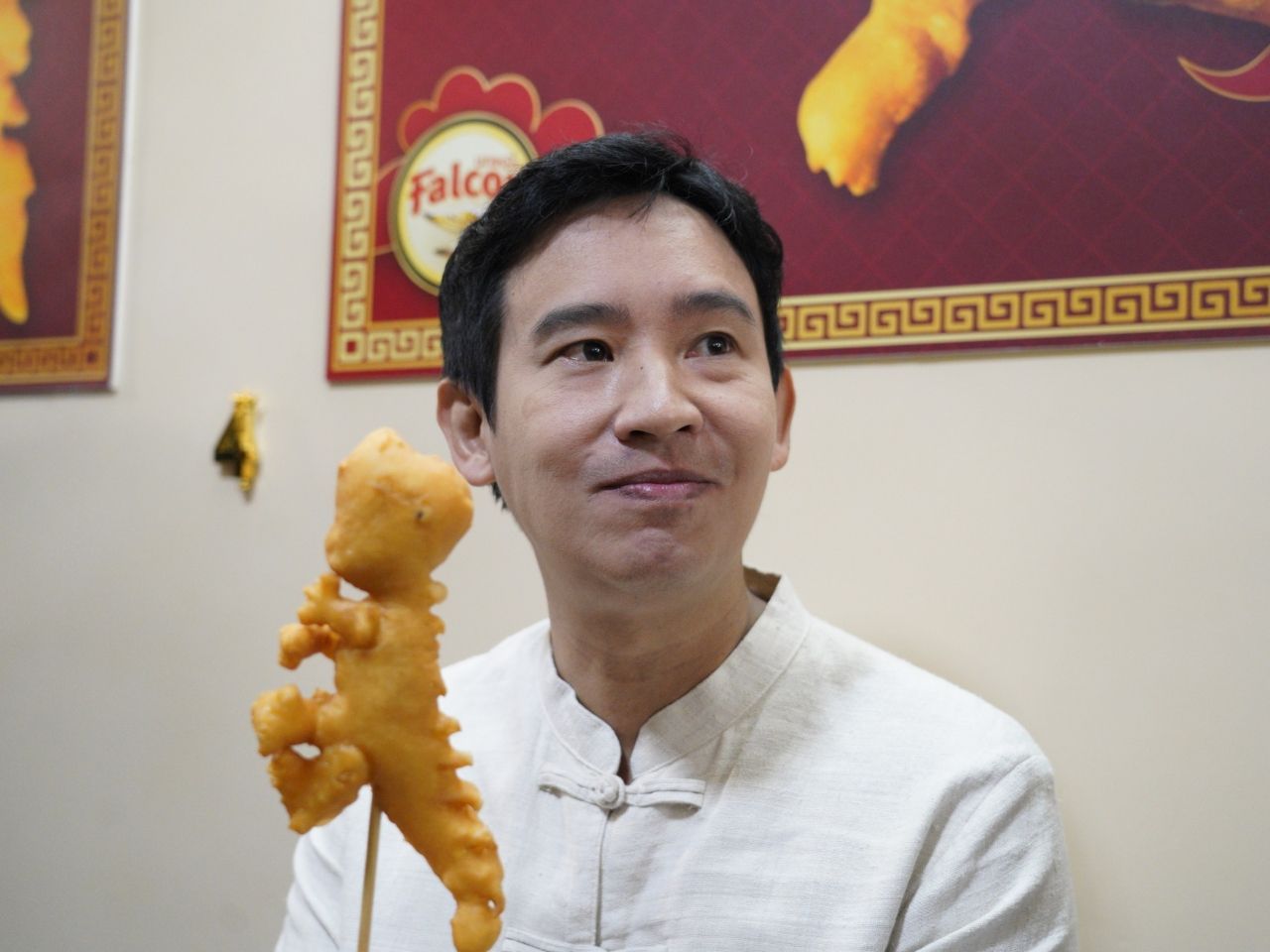 วันที่ 23 ธันวาคม 2567 หลังการให้สัมภาษณ์สื่อมวลชนจากการเดินตลาดวโรรส จ.เชียงใหม่ นายพิธา ลิ้มเจริญรัตน์ ในฐานะผู้ช่วยหาเสียง ผู้สมัครนายกองค์การเชียงใหม่ พรรคประชาชน พร้อมทีมงานได้แวะทานปาท่องโก๋ น้ำเต้าหู้ ที่ร้านโกเหน่ง ซึ่งทางร้านได้เตรียมปาท่องโก๋รูปน้องหมูเด้ง และรูปไดโนเสาร์ ซึ่งนายพิธา เลือกทานปาท่องโก๋ไดโนเสาร์ โดยให้เหตุผลว่า ทอดมาร้อนๆ สื่อมวลชนขอถ่ายภาพ จากนั้น นายพิธา ได้หักหางทานก่อน โดยในช่วงระหว่างทานอาหาร สื่อมวลชนขอความเห็นเรื่องสื่อมวลชนทำเนียบรัฐบาลการตั้งฉายารัฐบาล และบุคคลในรัฐบาลประจำปี 2567 โดยนายกรัฐมนตรี น.ส.แพทองธาร ชินวัตร ได้รับฉายาว่า “แพทองโพย” (อ่านเพิ่มเติม : ฉายาปี 67 “รัฐบาล(พ่อ)เลี้ยง” นายกฯ “แพทองโพย” วาทะแห่งปี “สามีเป็นคนใต้”)