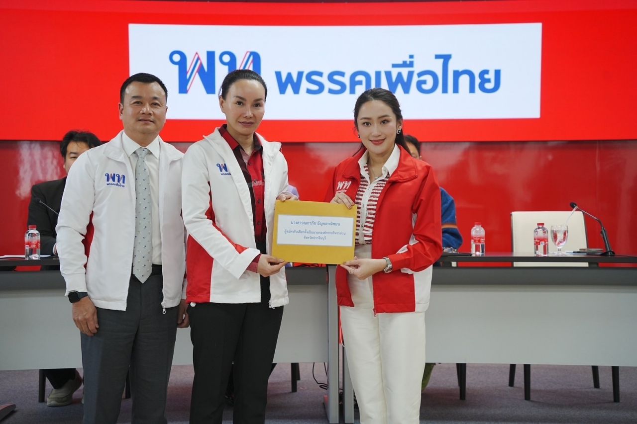 วันที่ 24 ธ.ค. 2567 เมื่อเวลา 15.30 น. ที่พรรคเพื่อไทย ถ.วิภาวดีฯ น.ส.แพทองธาร ชินวัตร นายกฯ ในฐานะหัวหน้าพรรค แถลงเปิดตัวผู้สมัครนายกองค์การบริหารส่วนจังหวัด (อบจ.) รวม 9 คน ประกอบด้วย 1.นางยลดา หวังศุภกิจโกศล จ.นครราชสีมา 2.นายนพรัตน์ ถาวงศ์ จ.น่าน 3.ว่าที่ ร.ต.ภูมิพันธ์ บุญมาตุ่น จ.บึงกาฬ 4.น.ส.ณภาภัช อัญชสาณิชมน จ.ปราจีนบุรี 5.นายบุญฐิณ ประทุมลี จ.มุกดาหาร 6.นายวุฒิไกร ช่างเหล็ก จ.หนองคาย 7.นางสลักจฤฏดิ์ ติยะไพรัช จ.เชียงราย 8.นางนฤมล สัพโส จ.สกลนคร และ 9.นายวิวัฒน์ชัย โหตระไวศยะ จ.ศรีสะเกษ