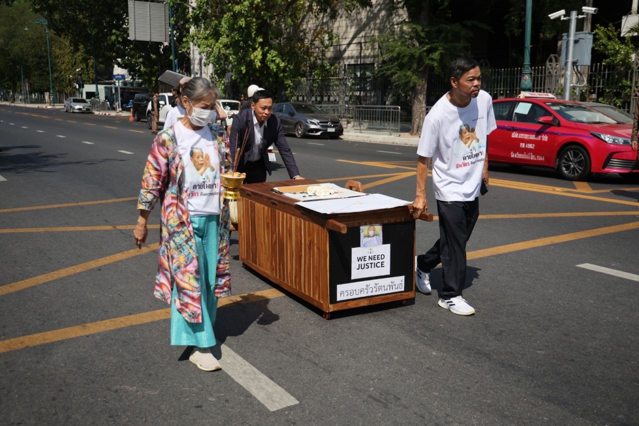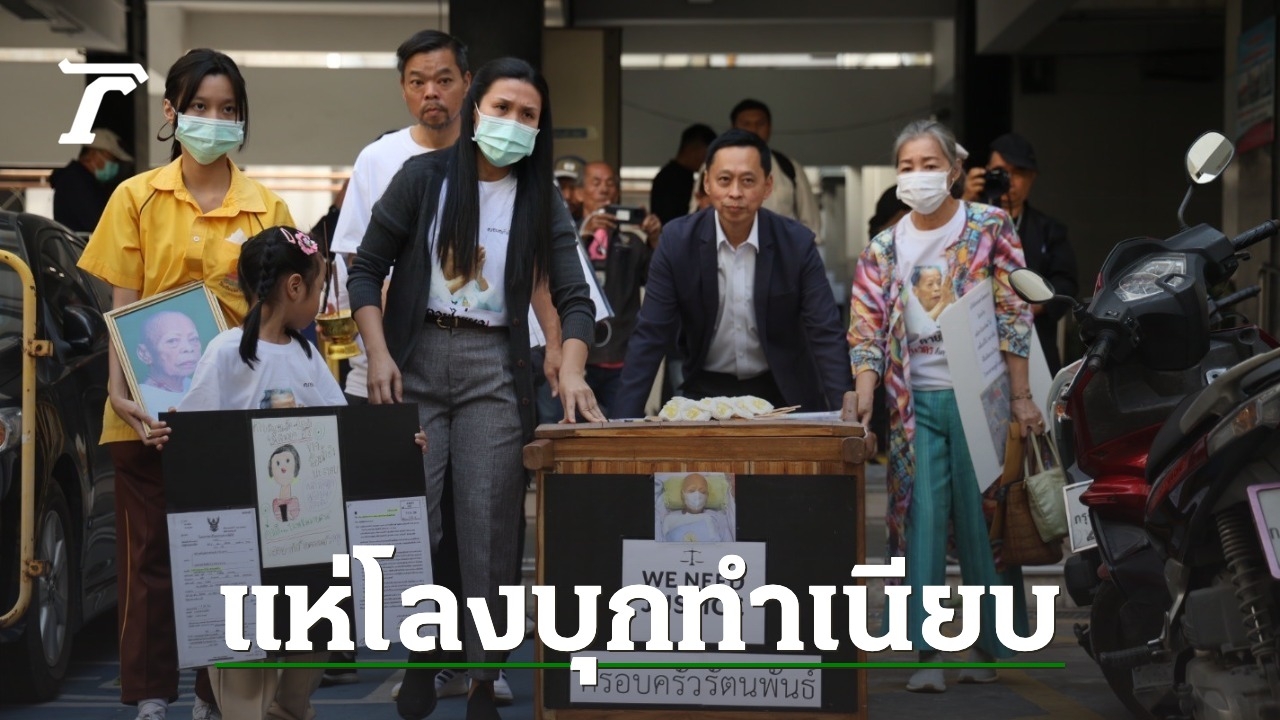 “ศรายุทธ รัตนพันธ์” พาครอบครัว บุกทำเนียบ แห่โลงศพเปล่าของแม่ พร้อมกระถางธูปเทียนดอกไม้จันทน์ ทวงคืนความยุติธรรมจากนายกฯ ปมเสียบ้านและที่ดินกว่า 34 ไร่