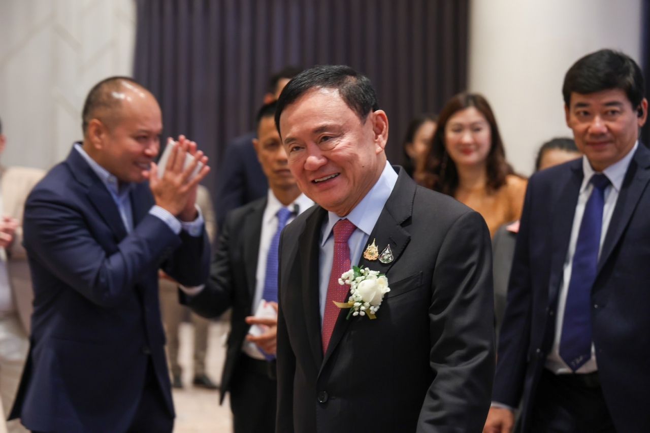 วันที่ 10 มกราคม 2568 ที่โรงแรมอัศวิน เขตหลักสี่ นายทักษิณ ชินวัตร อดีตนายกรัฐมนตรี และนายพิธา ลิ้มเจริญรัตน์ อดีตหัวหน้าพรรคก้าวไกล เดินทางมาร่วมงานฉลองมงคลสมรส นายธนาธร โล่ห์สุนทร สส. เขต 2 ลำปาง พรรคเพื่อไทย และ นางสาวรภัสสรณ์ นิยะโมสถ สส. ลำปาง เขต 4 พรรคประชาชน