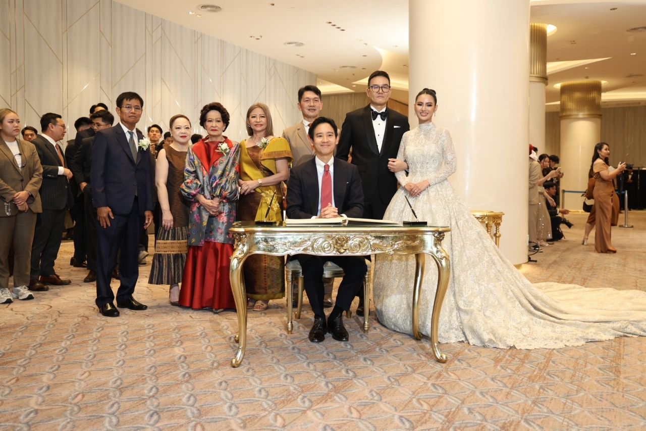 สุดชื่นมื่น งานฉลองมงคลสมรส สส.เพื่อไทย -ประชาชน จ.ลำปาง “ทักษิณ-พิธา” เกี่ยวแขนเป็นประธานงานแต่ง ด้าน “พิธา” มั่นใจ สส.มิ๊งค์ แยกเรื่องงานกับความรักได้ แดงไม่กลืนส้มแน่นอน