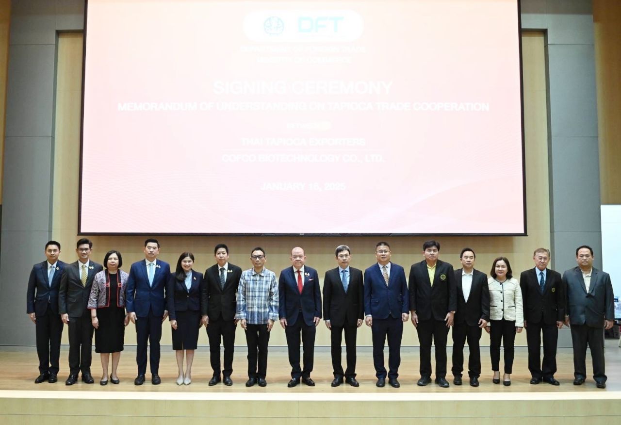 โดยการลงนามสัญญาซื้อขายและ MOU ระหว่างบริษัท COFCO BIOTECHNOLOGY CO.,LTD และผู้ประกอบการไทยในครั้งนี้ที่มีมูลค่าถึง 3,489 ล้านบาท ปริมาณ 540,000 ตัน คิดเป็นปริมาณหัวมันสดถึง 1.28 ล้านตัน และก่อนหน้านี้กระทรวงพาณิชย์ โดยกรมการค้าต่างประเทศได้จัดคณะผู้แทนภาครัฐและเอกชนเดินทางจัดกิจกรรมปลุกตลาดการค้ามันสำปะหลังในจีน ณ นครเซี่ยงไฮ้ และนครเฉิงตู เมื่อวันที่ 6-8 มกราคม 2568 ที่ผ่านมา ซึ่งประสบความสำเร็จเป็นอย่างสูงมีการลงนาม MOU ซื้อขายสินค้ามันสำปะหลังไปแล้วมูลค่าร่วม 5,314.95 ล้านบาท ปริมาณถึง 440,000 ตัน คิดเป็นปริมาณหัวมันสดกว่า 1.68 ล้านตัน และเมื่อรวมกันทำให้สามารถสร้างความต้องการซื้อมันสำปะหลังไทยได้ถึง 980,000 ตัน มูลค่าร่วม 8,083 ล้านบาท ซึ่งจะสามารถดูดซับหัวมันสดในประเทศได้กว่า 2.96 ล้านตัน หรือเกือบ 3 ล้านตัน