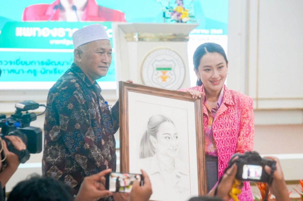 น.ส.แพทองธาร กล่าวต่อไปว่า ผู้อำนวยการโรงเรียนรายงานว่าห้องที่เรานั่งอยู่เคยน้ำท่วม 2 เมตร พร้อมโชว์รูปคุณพ่อ (นายทักษิณ ชินวัตร) ให้ดูว่า เมื่อปี 2548 คุณพ่อเคยมายังหนุ่มอยู่เลย หน้าเหมือนกันเลย ยิ่งตอนหนุ่มๆ หน้ายิ่งเหมือน โดยผู้อำนวยการโรงเรียนได้ขอให้ตนเซ็นชื่อให้ และมีอาจารย์วาดรูปให้สวยมากก็ประทับใจ เมื่อถามว่านายกรัฐมนตรีได้เห็นการสร้างสันติภาพในพื้นที่ด้วยใช่หรือไม่ นายกรัฐมนตรี กล่าวตอบว่า เห็นชัดขึ้นเยอะ เวลาไปจังหวัดไหนก็ยิ่งเห็นจังหวัดนั้นชัดยิ่งขึ้น ท้องถิ่นรู้ปัญหาได้ดีที่สุด ตนแม้ลงไป 1-2 วันสั้นๆ ก็มีความรู้เพิ่มขึ้นกับพื้นที่นั้นๆ