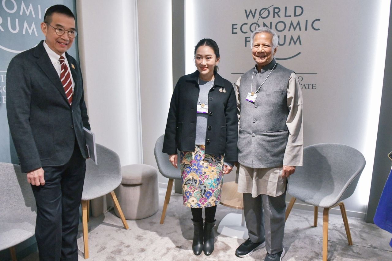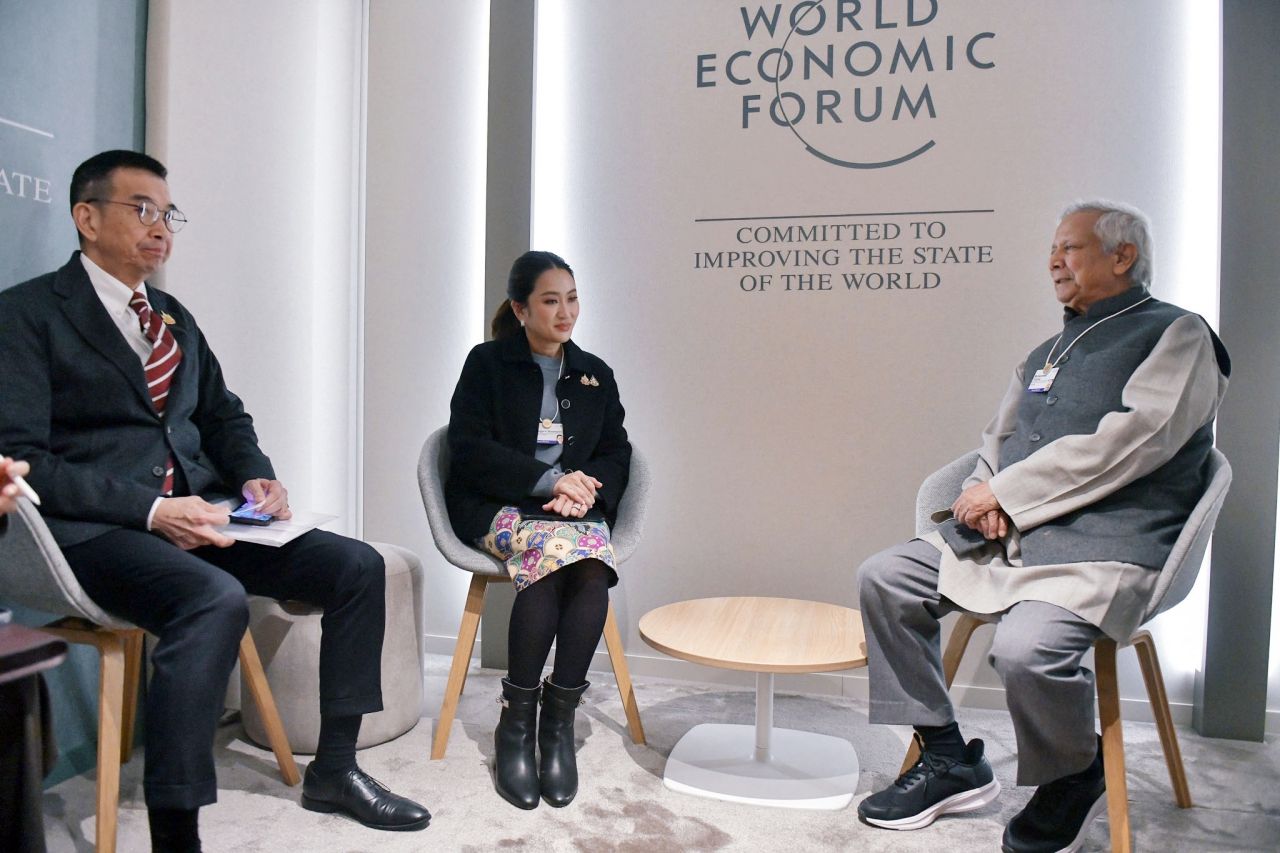 เมื่อเวลา 10.15 น. วันที่ 22 มกราคม 2568 (ตามเวลาท้องถิ่นเมืองดาวอส สมาพันธรัฐสวิส) น.ส.แพทองธาร ชินวัตร นายกรัฐมนตรี หารือกับ ศาสตราจารย์มูฮัมหมัด ยูนุส ประธานคณะที่ปรึกษารัฐบาลสาธารณรัฐประชาชนบังกลาเทศ โดย น.ส.แพทองธาร กล่าวว่า ไทยและบังกลาเทศมีความสัมพันธ์ที่ใกล้ชิด รวมถึงความร่วมมือทางเศรษฐกิจระหว่างสองประเทศ โดยบังกลาเทศเป็นคู่ค้าอันดับ 2 ในภูมิภาคเอเชียใต้ เป็นแหล่งลงทุนที่มีศักยภาพ ซึ่งภาคเอกชนไทยหลายบริษัทเข้าไปลงทุนในบังกลาเทศไม่ต่ำกว่า 20 ปี จึงเห็นพ้องในการเร่งขับเคลื่อนการเจรจาข้อตกลงการค้าเสรี (FTA) ระหว่างไทยกับบังกลาเทศ เพื่อช่วยเพิ่มปริมาณการค้าระหว่างกัน มีเป้าหมายมูลค่าการลงทุนประมาณ 2,000 ล้านดอลลาร์สหรัฐ และขอเชิญประธานคณะที่ปรึกษารัฐบาลเป็นผู้บรรยายพิเศษในการประชุม Young Gen Forum ที่ไทยจะจัดในห้วงการประชุม BIMSTEC Summit ครั้งที่ 6 ในวันที่ 4 เมษายน 2568 ที่กรุงเทพมหานคร เชื่อว่าจะช่วยสร้างแรงบันดาลใจให้กับเยาวชนคนรุ่นใหม่ ก่อนจะส่งมอบตำแหน่งประธาน BIMSTEC ให้แก่บังกลาเทศ