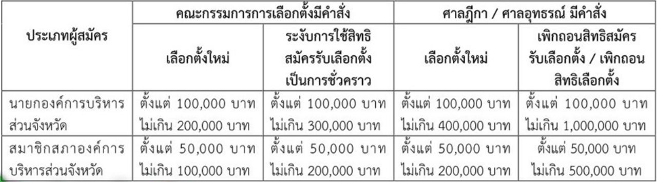 - ส.อบจ. ตั้งแต่ 50,000 ไม่เกิน 500,000 บาท