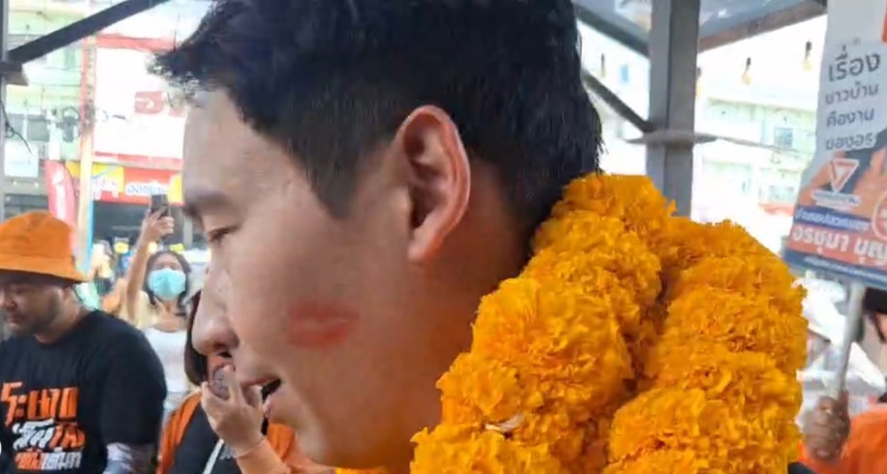 ขณะที่นายรังสิมันต์ ก็โดนหอมแก้มจนลิปสติกติดเช่นกัน เจ้าตัวถึงกับตกใจถามผู้สื่อข่าวว่า “จริงเหรอ แม่ๆ เขามาหอมแก้ม ไม่รู้ว่าติด” ก่อนจะหัวเราะ และออกอาการเขิน