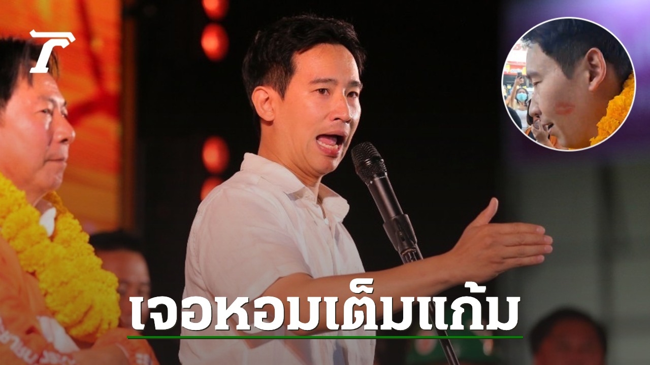 จนผู้สื่อข่าวเข้าไปทักว่า “จะเข้าบ้านได้หรือไม่มีรอยลิปสติกติดแก้ม” นายพิธา ทำหน้าตกใจ ก่อนจะพูดว่า “เหรอ” แล้วหัวเราะ ก่อนจะหันหน้าไปขอทิชชู่กับทีมงาน แล้วบอกว่า “นานๆ มีที ปกติก็ไม่ค่อยมีกับเขาหรอก”