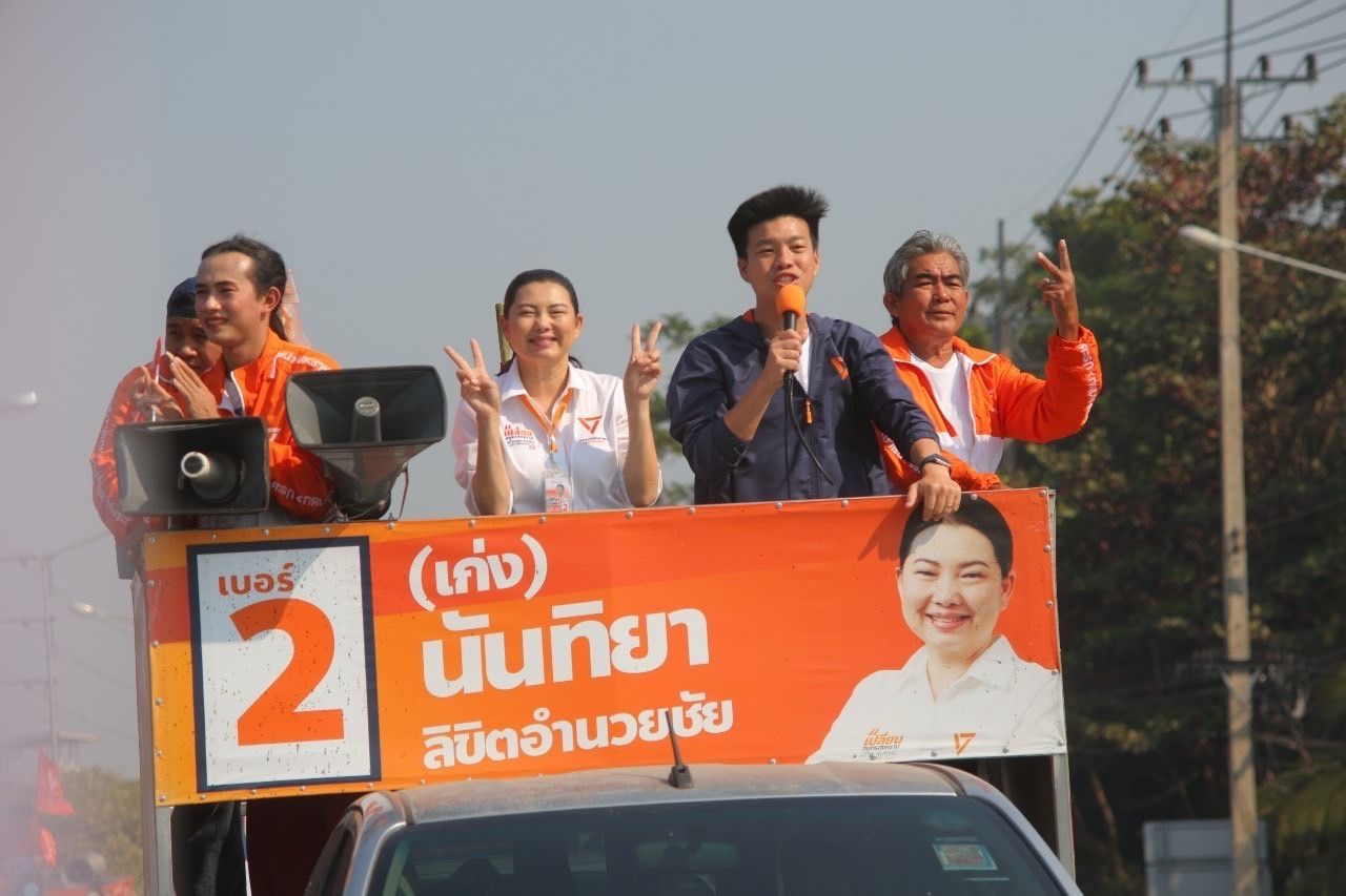 จากนั้นนายณัฐพงษ์และนางนันทิยาขึ้นรถแห่หาเสียงรอบพื้นที่ตำบลบางพรม ตำบลบางคนที และตำบลบางนกแขวก ขอคะแนนเสียงชาวแม่กลอง ก่อนเดินทางไปยังตลาดอัมพวา โดยระหว่างขึ้นรถแห่หาเสียง นายณัฐพงษ์ได้ปราศรัยเชิญชวนประชาชนไปใช้สิทธิ์เลือกตั้ง อบจ. ขอชัยชนะให้ เก่ง นันทิยา ในวันที่ 1 กุมภาพันธ์นี้ มั่นใจนางนันทิยาจะไม่ทำให้ชาวแม่กลองผิดหวัง เนื่องจากประสบการณ์การทำงาน ความคุ้นเคยกับพื้นที่ รู้ลึก รู้จริงถึงปัญหา โดยระหว่างเส้นทางปราศรัย มีพี่น้องประชาชนออกมาทักทายและส่งเสียงให้กำลังใจ