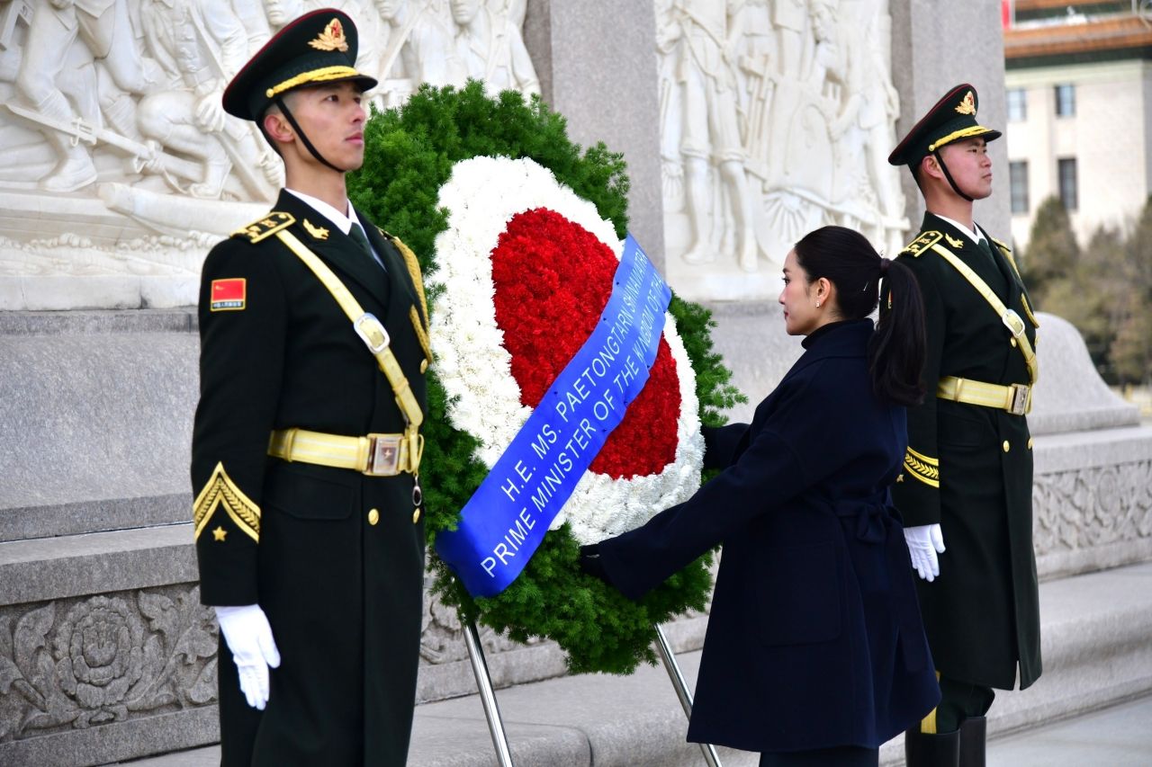 นายกรัฐมนตรีร่วมพิธีวางพวงมาลา ณ อนุสาวรีย์วีรชน จัตุรัสเทียนอันเหมิน