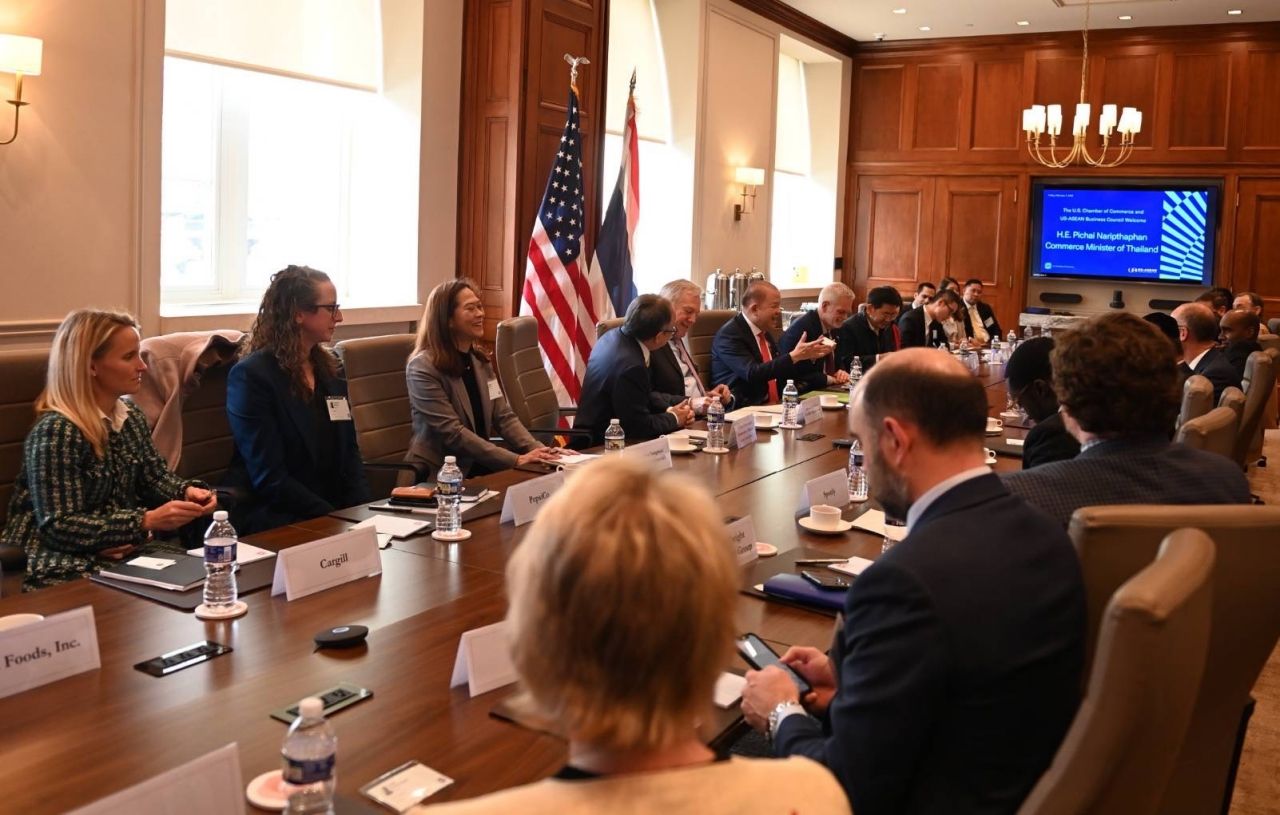 ทั้งนี้ในการหารือกับหอการค้าสหรัฐฯ (USCC) สภาธุรกิจอาเซียน-สหรัฐฯ (USABC) ได้มีผู้บริหารจากกว่า 26 บริษัท ได้แก่ Nasdaq, FedEx, The Asia Group, PepsiCo, IBM, Mars, Citi, Organon, Intel, Vriens & Partners, ConocoPhillips, Caterpillar, Seagate, Tyson Foods, Apple, DGA-Albright, Stonebridge Group, BowerGroupAsia, S&P Global, Visa, Boeing, Dow, Cargill, 3M และ Viatris เข้าร่วมด้วย โดยในปี 2567 สหรัฐฯ เป็นคู่ค้าอันดับ 2 ของไทย (รองจากจีน) ซึ่งมีมูลค่าการค้ารวม 74,484.81 ล้านดอลลาร์สหรัฐ โดยไทยส่งออกไปยังสหรัฐฯ เป็นมูลค่า 54,956.21 ล้านดอลลาร์สหรัฐ ซึ่งมีสินค้าส่งออกสำคัญ เช่น คอมพิวเตอร์ ผลิตภัณฑ์ยาง อัญมณี รถยนต์ และเครื่องปรับอากาศ และไทยนำเข้าสินค้าจากสหรัฐฯ เป็นมูลค่า 19,528.61 ล้านดอลลาร์สหรัฐ ซึ่งมีสินค้านำเข้าสำคัญ เช่น น้ำมันดิบ เครื่องจักรกล และเคมีภัณฑ์