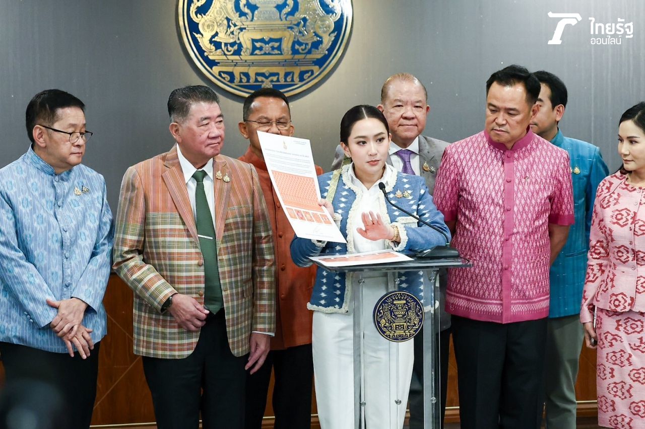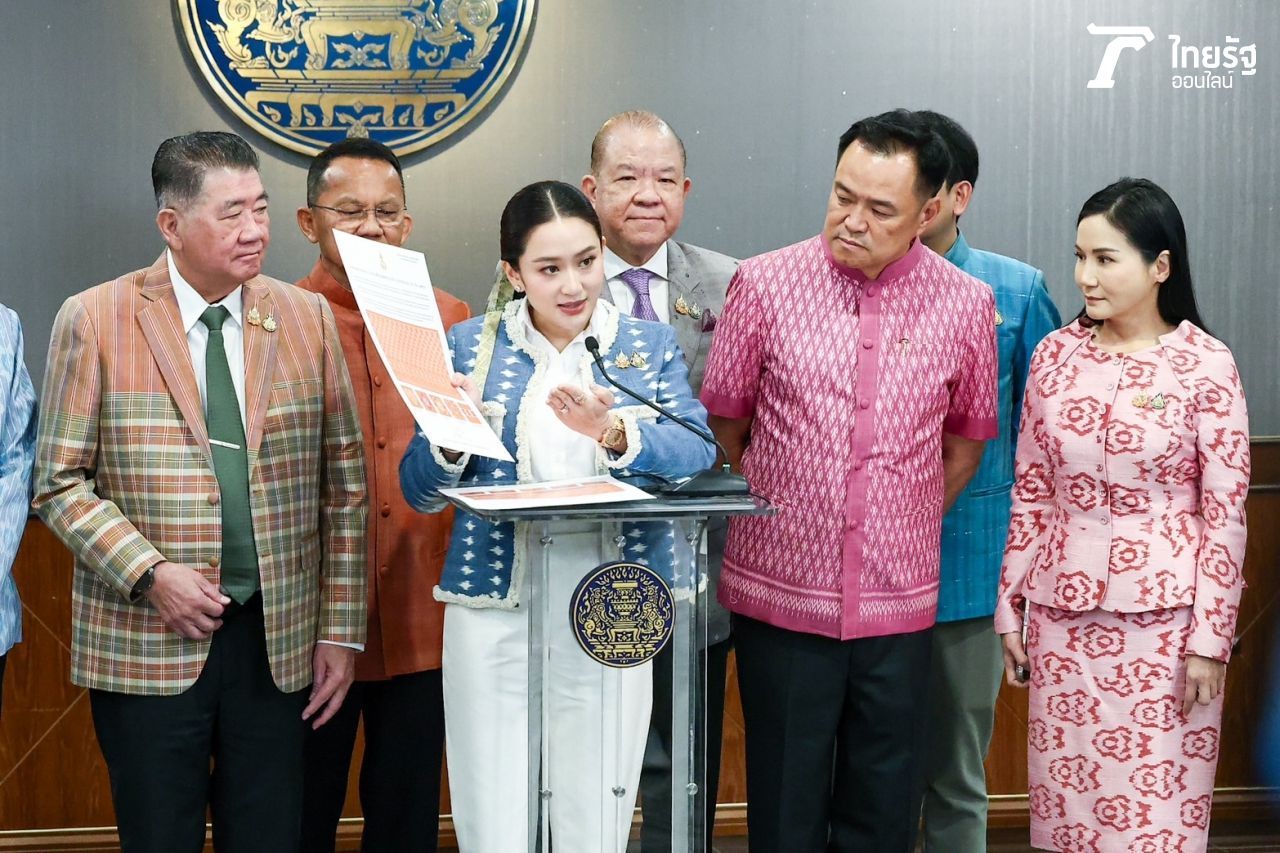 ต่อมา น.ส.แพทองธาร แถลงภายหลังการประชุม ครม. ในตอนหนึ่ง ว่า เนื่องด้วยสมเด็จพระเจ้าลูกเธอ เจ้าฟ้าสิริวัณณวรี นารีรัตนราชกัญญา ทรงออกแบบผ้าลายพระราชทาน “ผ้าลายสิริราชพัสตราภรณ์” เนื่องในโอกาสที่ทรงได้รับการถวายปริญญาศิลปกรรมศาสตรดุษฎีบัณฑิตกิตติมศักดิ์ สาขาวิชาศิลปะการออกแบบพัสตราภรณ์ ประจำปีการศึกษา 2566 จากมหาวิทยาลัยธรรมศาสตร์ พระองค์ท่านจึงได้พระราชทานผ้าลายดังกล่าวแก่ช่างทอผ้า และช่างหัตถกรรมไทยเพื่อนำไปถักทอผืนผ้า และสร้างสรรค์งานหัตถกรรม ซึ่งตนได้เชิญชวนให้ ครม. และประชาชนทุกคน สวมใส่ผ้าลายพระราชทานสิริราชพัสตราภรณ์ และขอให้ทุกหน่วยงานช่วยกันประชาสัมพันธ์ผ้าลายพระราชทาน พร้อมกับให้ความเข้าใจที่ถูกต้องในการสวมใส่ตามโอกาสต่างๆ รวมถึงศึกษาต่อยอดส่งเสริมภูมิปัญญาท้องถิ่นต่อไป ทั้งนี้ใน ครม. ก็จะมีโอกาสสวมใส่กันในเร็วๆ นี้ โดยนายกฯ ได้โชว์แบบลายผ้าของผ้าลายสิริราชพัสตราภรณ์ พร้อมระบุว่า ขอให้ดูลายผ้าไว้ เวลาไปตัดผ้าขออย่าให้ลายพลิกด้านหรือสลับด้าน
