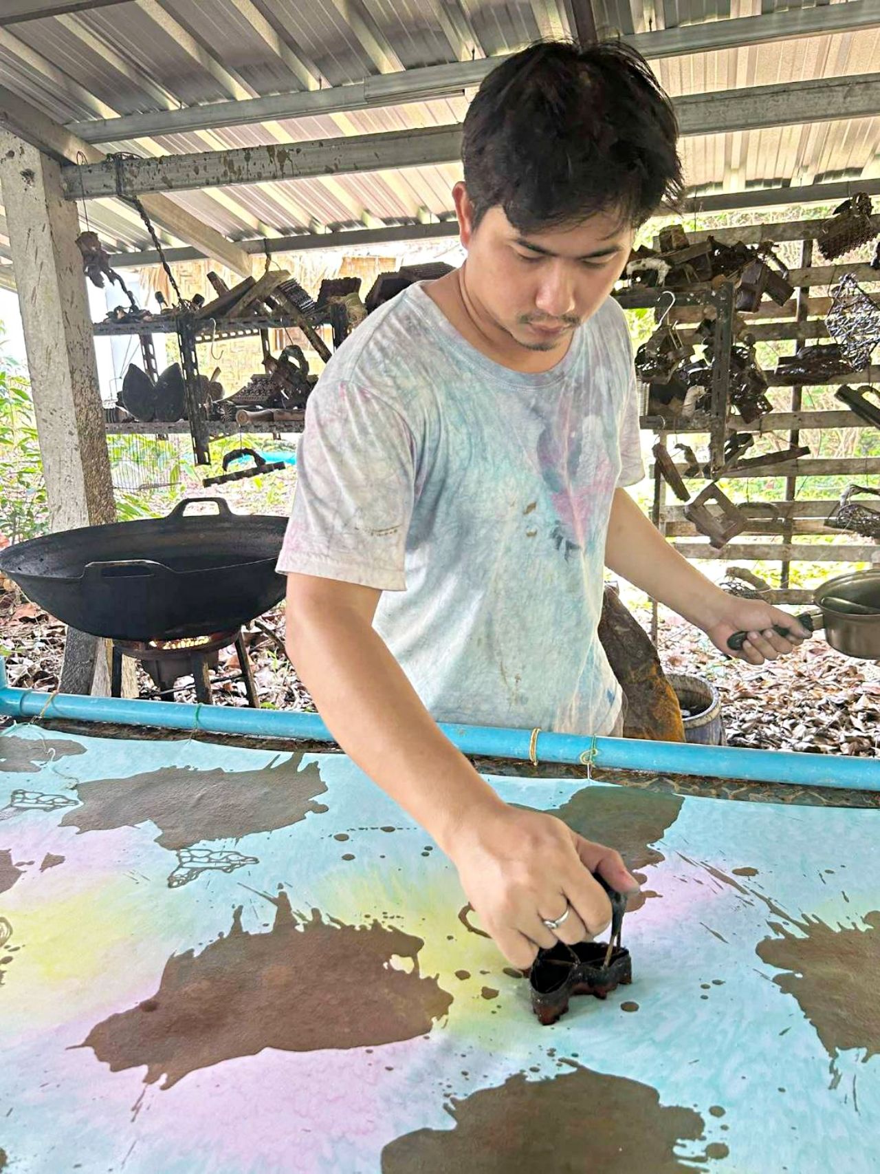 น.ส.ศศิกานต์ กล่าวต่อไปว่า สีสันลวดลายบนผืนผ้ามาจากการผสมผสานระหว่างรูปปั้นนางเงือกทองและท้องทะเล อีกทั้งในกระบวนการผลิตยังได้นำเทคนิคการลงเกลือทะเลถึงสามชั้นเพื่อให้ผืนผ้ามีความสดใสเหมือนท้องทะเลและสีติดทนนาน ใครได้สวมใส่ผ้าผืนนี้เสมือนได้อยู่ท่ามกลางบรรยากาศท้องทะเลที่งดงามและเสียงเกลียวคลื่นกระทบฝั่งของชายหาดสมิหลา