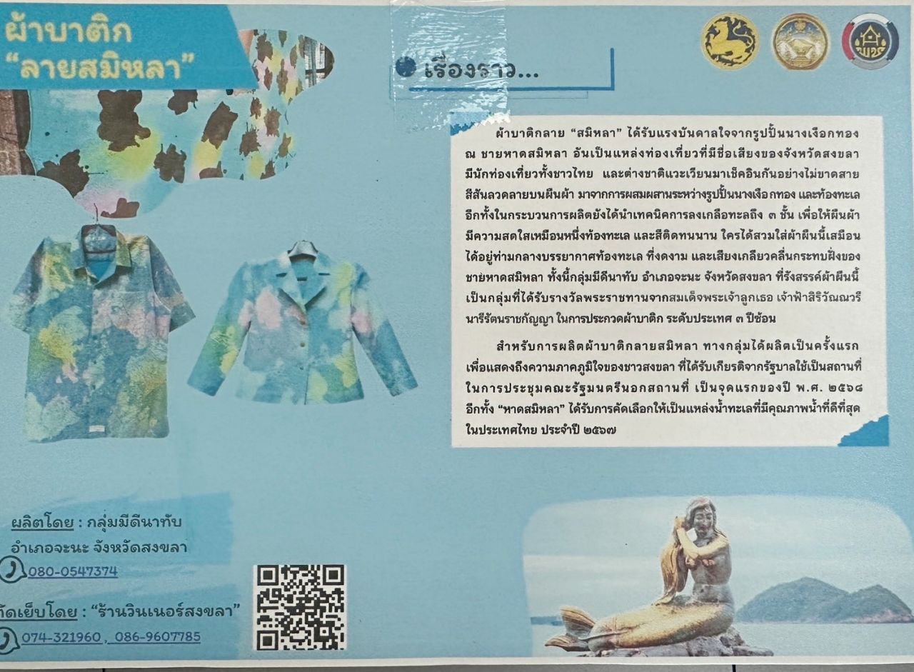สำหรับการผลิตผ้าบาติกลายสมิหลานี้ ทางกลุ่มได้ผลิตเป็นครั้งแรกเพื่อแสดงถึงความภาคภูมิใจของชาวสงขลา ที่ได้รับเกียรติจากรัฐบาลใช้เป็นสถานที่การประชุมคณะรัฐมนตรีนอกสถานที่เป็นจุดแรกของปี พ.ศ. 2568 อีกทั้งหาดสมิหลาได้รับการคัดเลือกให้เป็นแหล่งน้ำทะเลที่มีคุณภาพน้ำที่ดีที่สุดในประเทศไทย ประจำปี 2567
