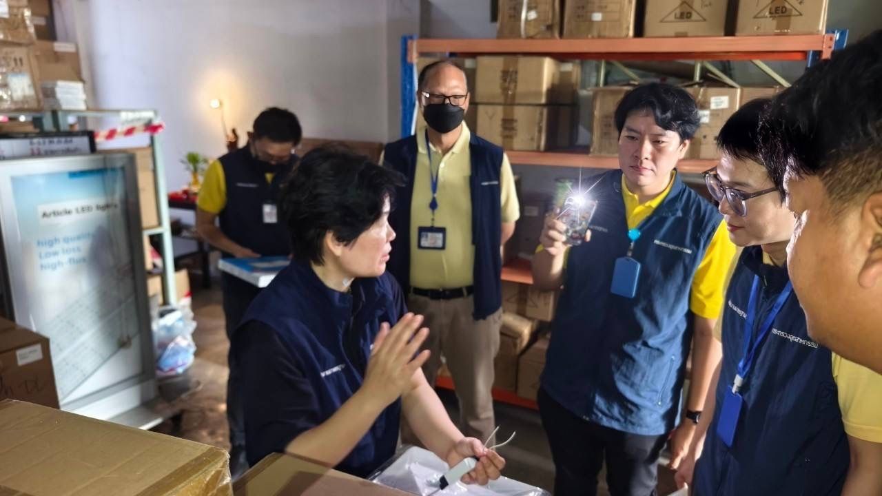 น.ส.ฐิติภัสร์ กล่าวว่า ทีมชุดตรวจการสุดซอยได้เข้าตรวจร้านขายเครื่องใช้ไฟฟ้าของบริษัท นิว สตาร์ไลท์ เทค (ไทยแลนด์) จำกัด แขวงสวนหลวง เขตสวนหลวง กรุงเทพฯ โดยระบุชื่อนายต้า ชิ่ง วู เป็นกรรมการ ซึ่งบริษัทฯ เคยถูกดำเนินคดีและจับกุมเมื่อปี 2564 ได้ถูกยึดอายัดของกลางกว่า 11 ล้านบาท และทางคณะกรรมการมาตรฐานผลิตภัณฑ์อุตสาหกรรม (กมอ.) ได้มีคำสั่งให้ทำลายของกลาง และเมื่อวันที่ 23 มกราคม 2568 ที่ผ่านมา สมอ. ได้เข้าดำเนินการตามคำสั่ง กมอ. ปรากฏว่าของกลางทั้งหมดหายไป เจ้าหน้าที่จึงได้ลงบันทึกประจำวันและดำเนินคดี พร้อมขยายผลต่อโดยตรวจพบสินค้าไม่มี มอก. ล็อตใหม่มูลค่ากว่า 26.3 ล้านบาท เช่น หลอดไฟแอลอีดี โคมไฟ หลอดไฟขั้วเกลียว แหล่งจ่ายไฟสำหรับคอมพิวเตอร์ อะแดปเตอร์ สายไฟ และป้ายไฟ เป็นต้น จึงได้ยึดอายัดและดำเนินคดีข้อหาจำหน่ายสินค้าไม่ได้มาตรฐานและนำของกลางมาเก็บรักษาไว้เพื่อไม่ให้มีการกระทำที่ฝ่าฝืนกฎหมายอีก