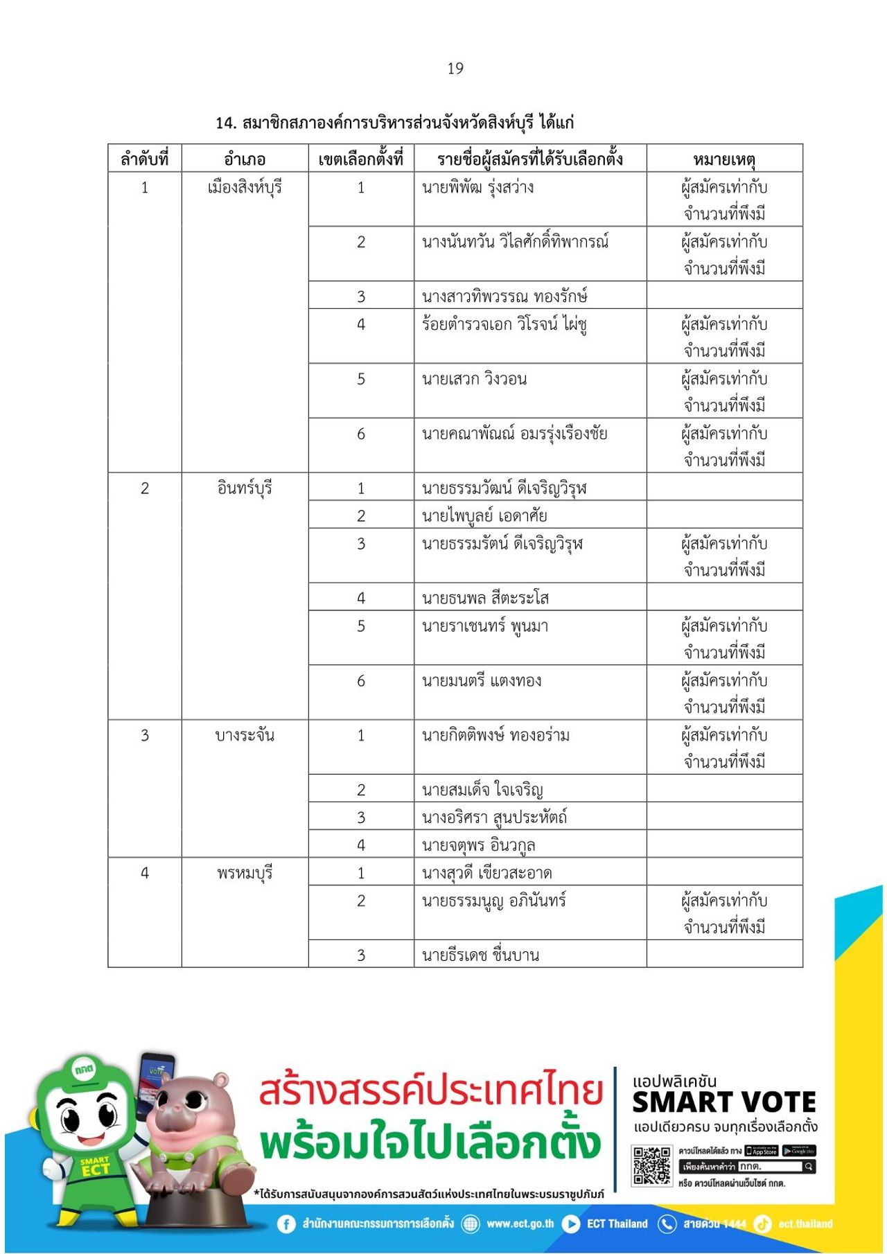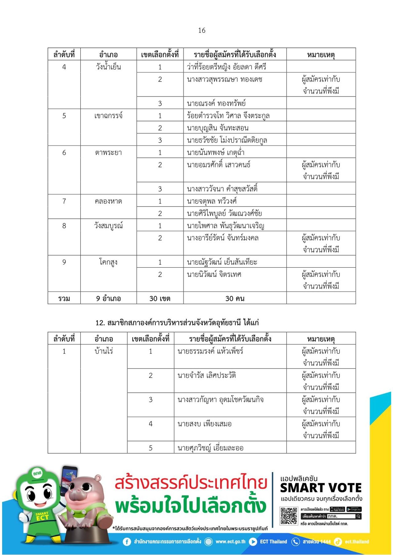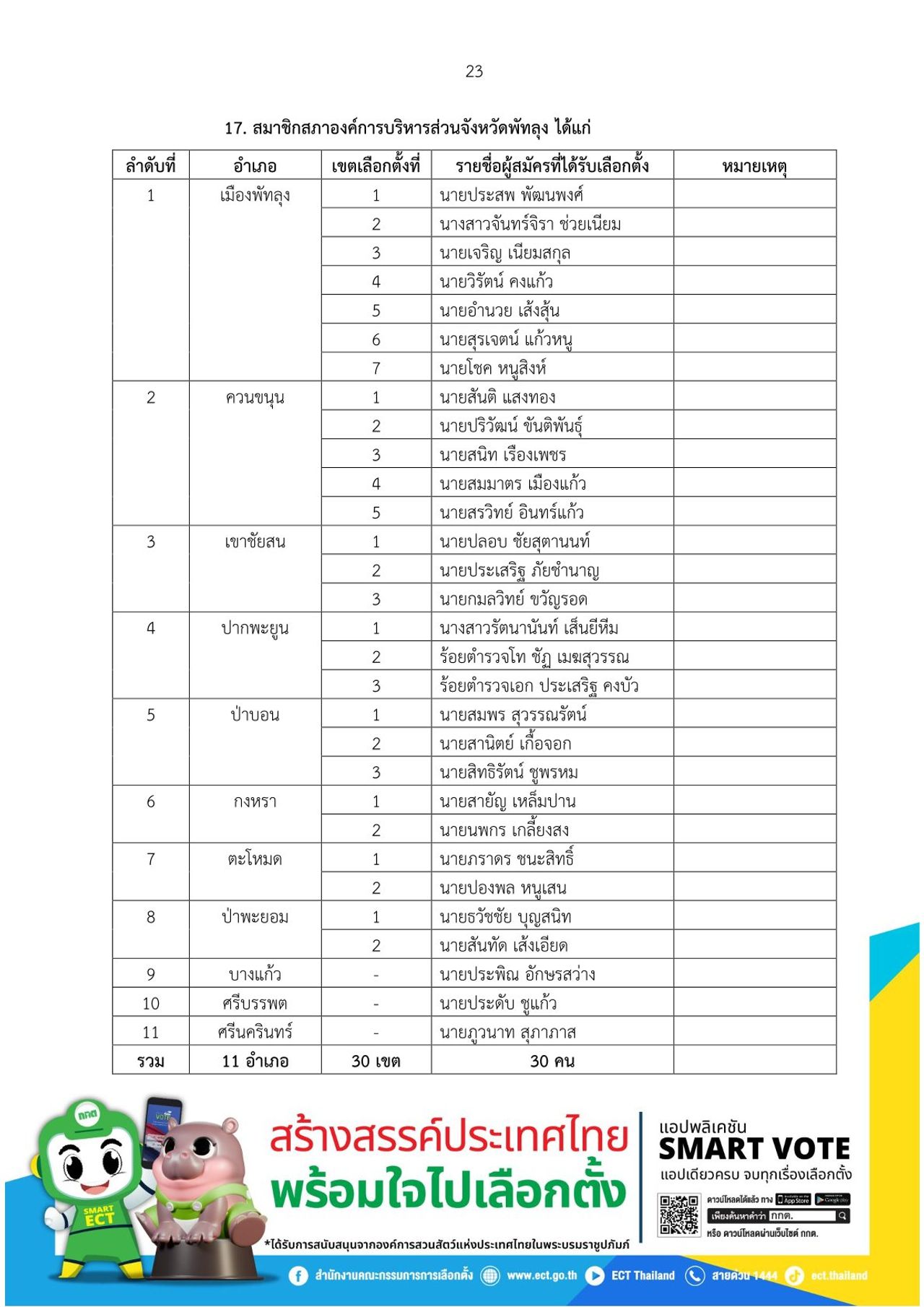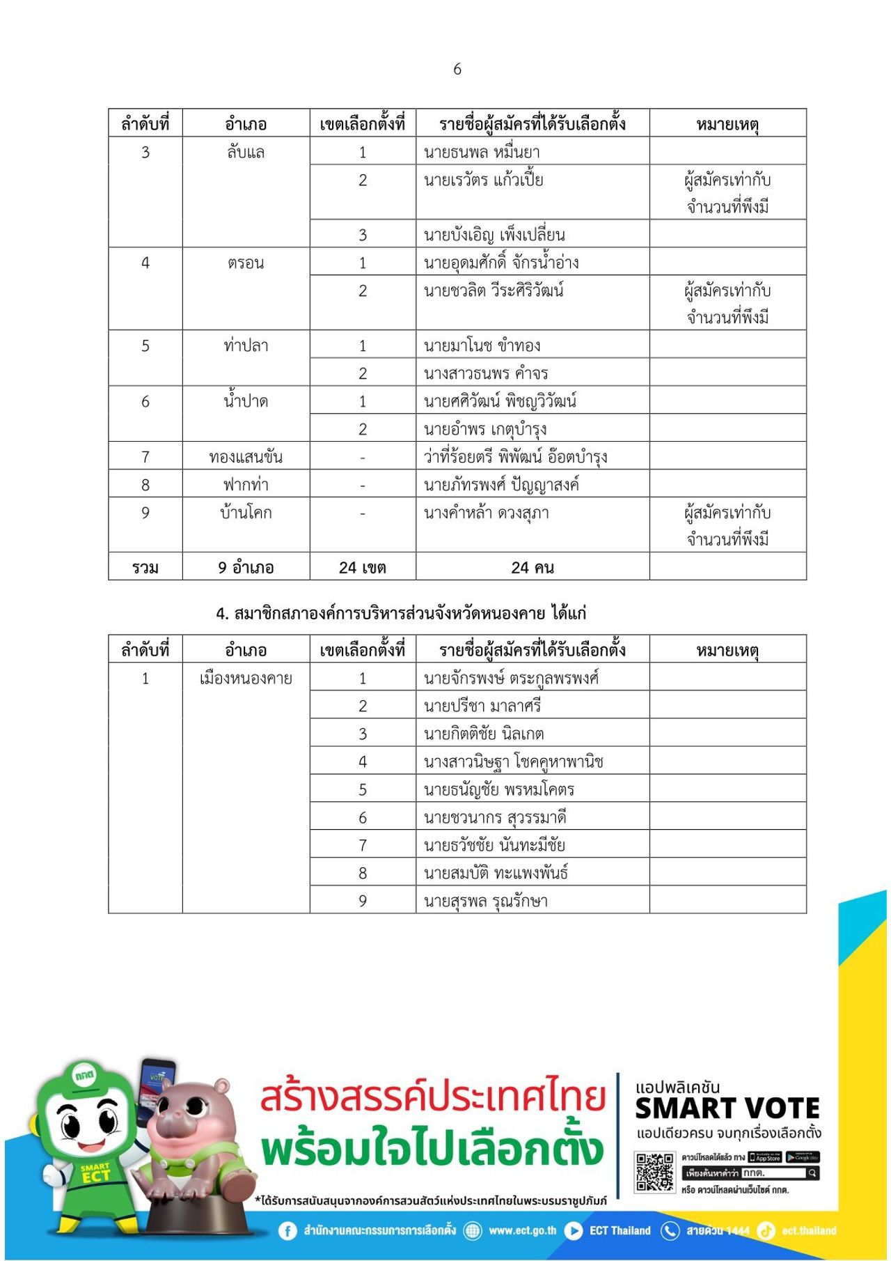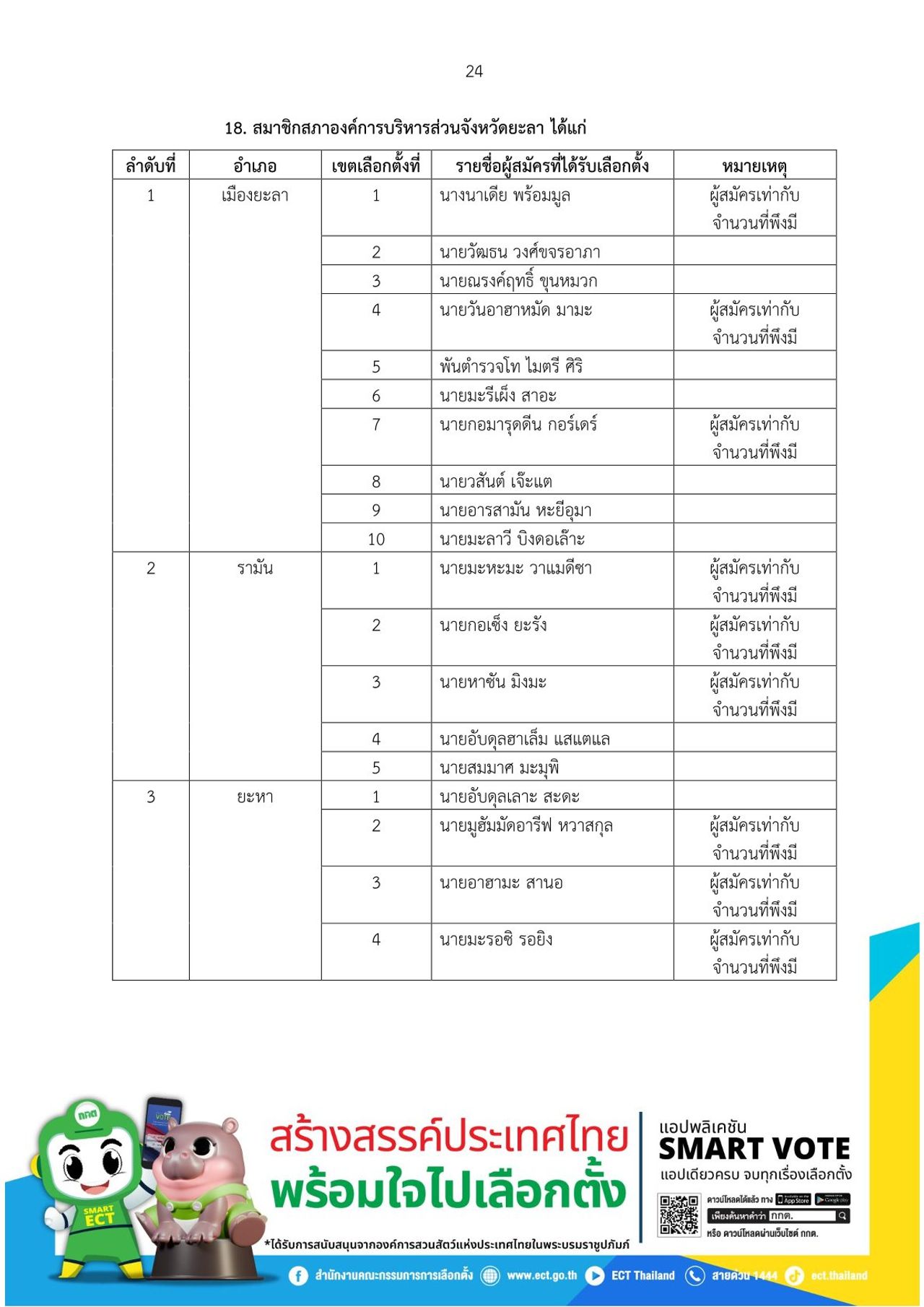 พร้อมกับประกาศผลการเลือกตั้งสมาชิกสภาองค์การบริหารส่วนจังหวัด จำนวน 19 จังหวัด ได้แก่ พิษณุโลก, อุตรดิตถ์, น่าน, หนองคาย, เลย, บึงกาฬ, ร้อยเอ็ด, ศรีสะเกษ, สุรินทร์, อุบลราชธานี, สระแก้ว, อุทัยธานี, นครปฐม, สิงห์บุรี, ชัยนาท, กระบี่, พัทลุง, ยะลา และนราธิวาส
